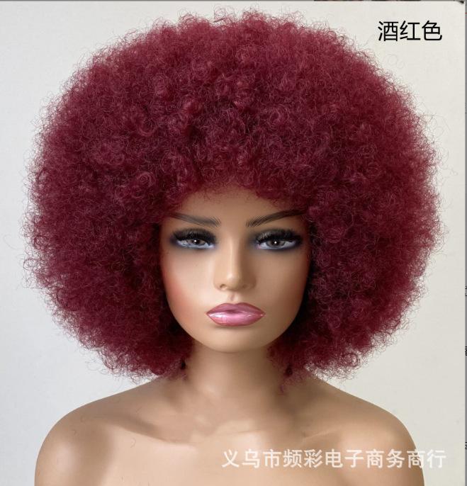 Compre AliExpress Europeu e Americano nova peruca Africano pequeno rolo ondulação de água peruca explosão cabeça capa Fibra Química cabeça capa em estoque no atacado no Joom.pro