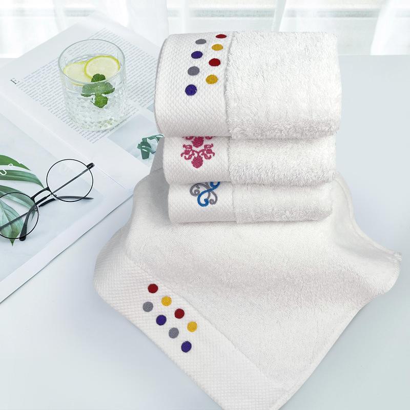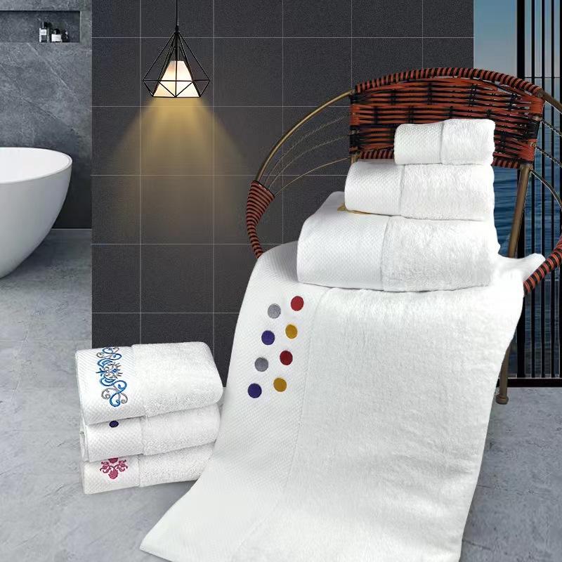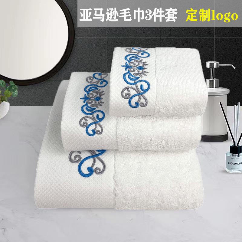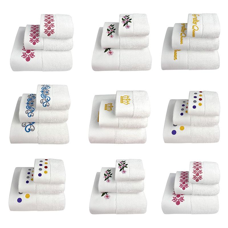 Toalha de hotel de algodão terno atacado comércio exterior branco bordado toalha de banho conjunto de três peças de beleza presente toalha conjunto personalização