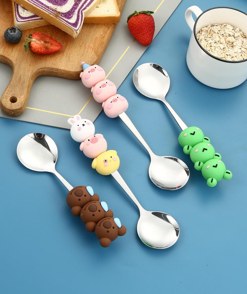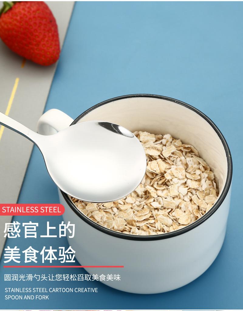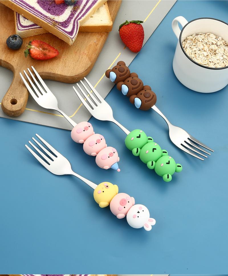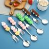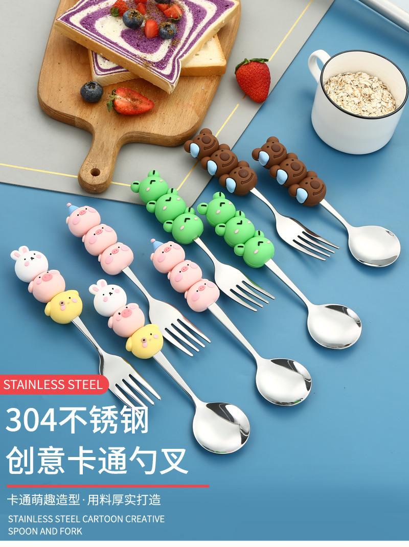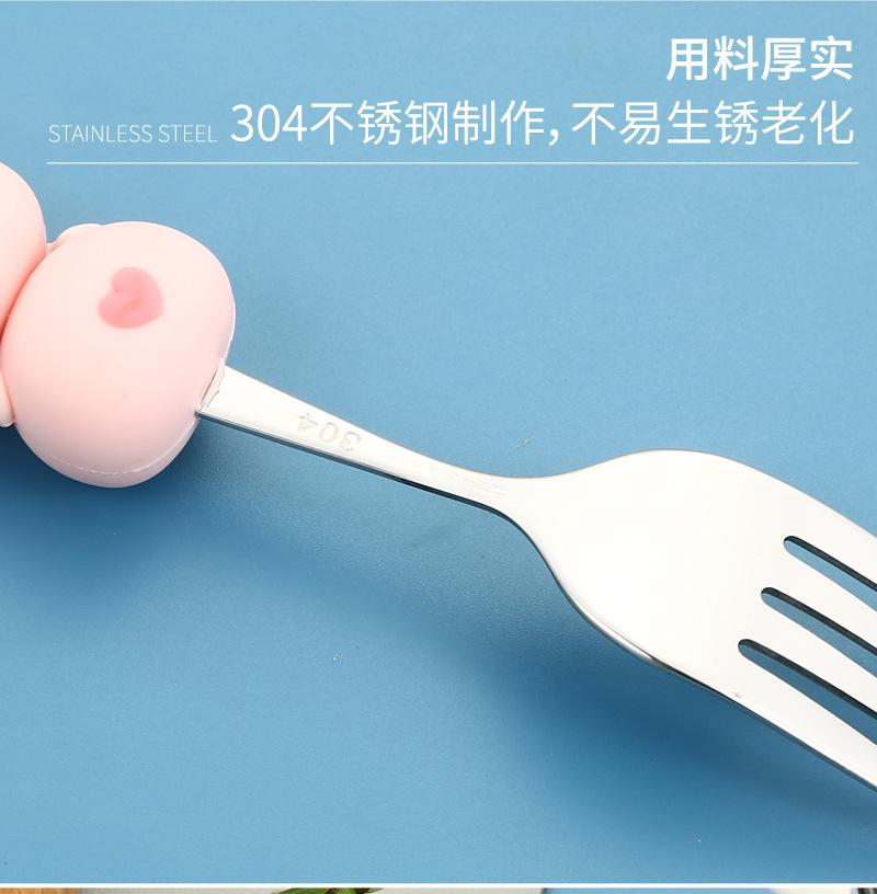 Criativo silicone lidar com garfo colher 304 aço inoxidável bonito garfo colher de arroz infantil dos desenhos animados colher de bebê garfo