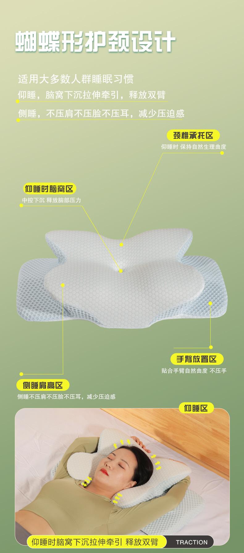 Travesseiro de espuma viscoelástica de fábrica de travesseiros transfronteiriços, travesseiro de borboleta com recuperação lenta, travesseiro de pescoço sem colapso e sono profundo