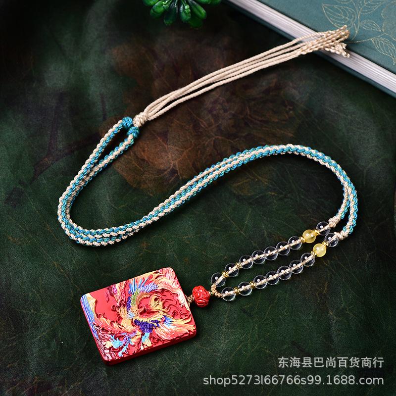 Original Pintado Cinábrio Phoenix Dança Nove Dias Pingente Xiangyun Ping Um Não-incidente Marca Roxo Ouro Areia Phoenix Colar Corrente de Lã