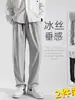 Calças de seda de gelo retas masculinas de verão fino e solto calças casuais estilo americano marca de moda esportiva pingente calças de perna larga