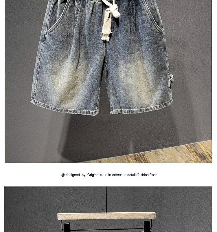 Compre Estilo americano Casual Denim Shorts Retro Old-fit Calças de cinco pontos Calças Masculinas de Marca Moderna Lavadas Soltas no atacado no Joom.pro