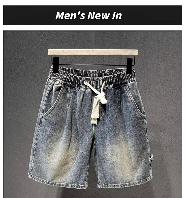 Estilo americano Casual Denim Shorts Retro Old-fit Calças de cinco pontos Calças Masculinas de Marca Moderna Lavadas Soltas