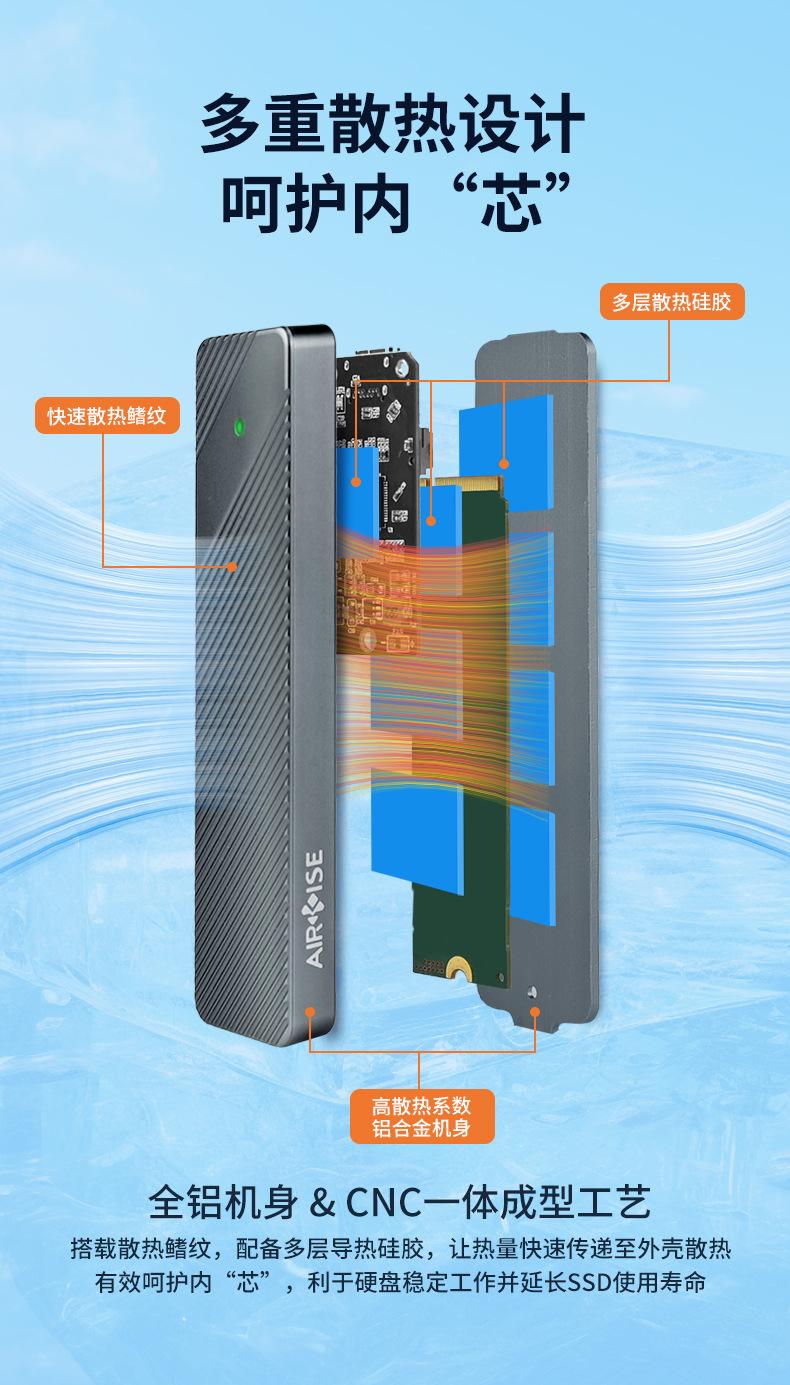 Lista de embalagem: caixa de unidade de estado sólido M.2, cabo de dados de alta velocidade A para C, cabo de dados de alta velocidade C para C, folha de silicone condutora térmica, chave de fenda, cordão, manual em chinês e inglês