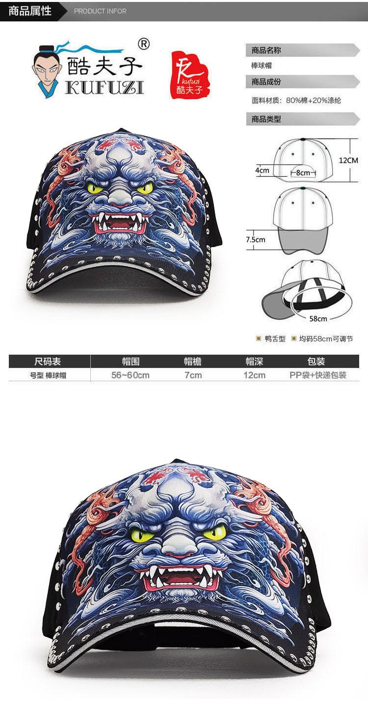 Chapéu Masculino Agressivo Impresso Boné de Beisebol Algodão Hard Top Ampliado Cap Primavera e Verão Alta Qualidade Cool Chapéu Street Style
