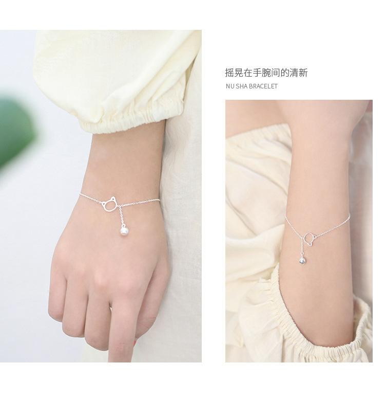 Pulseira de gato sino com borla pequena e fresca, estilo japonês e coreano, coração de menina gato ins super fada tocará, pulseira simples famosa na internet