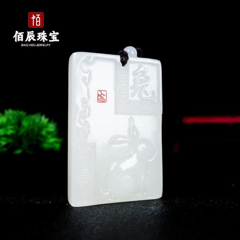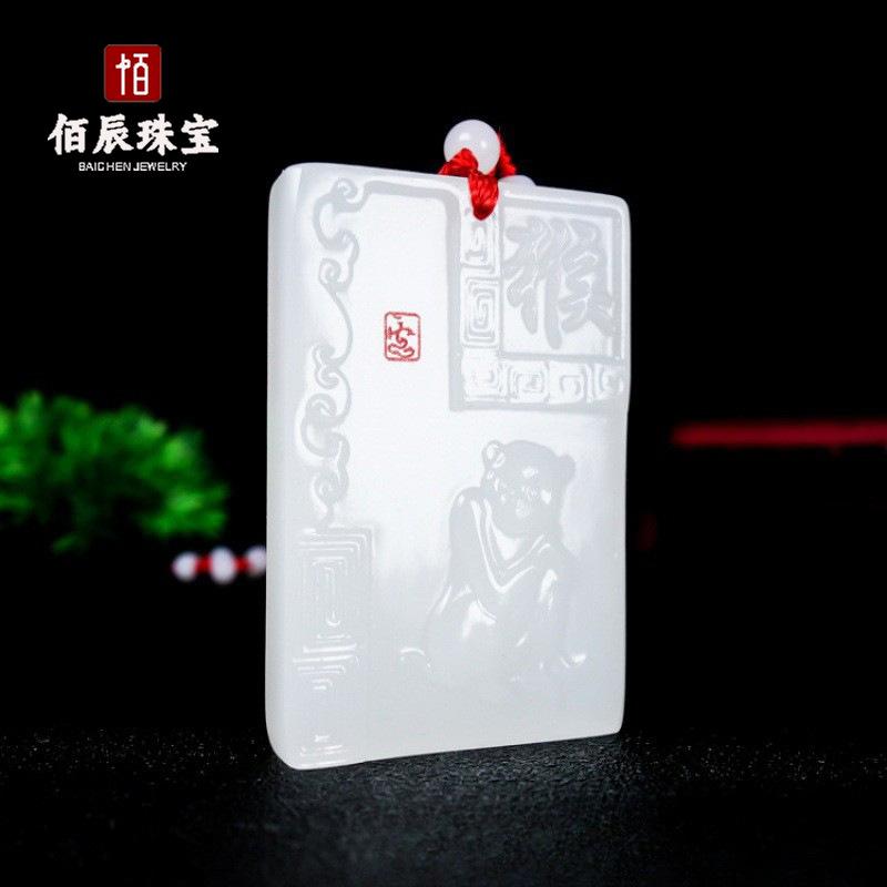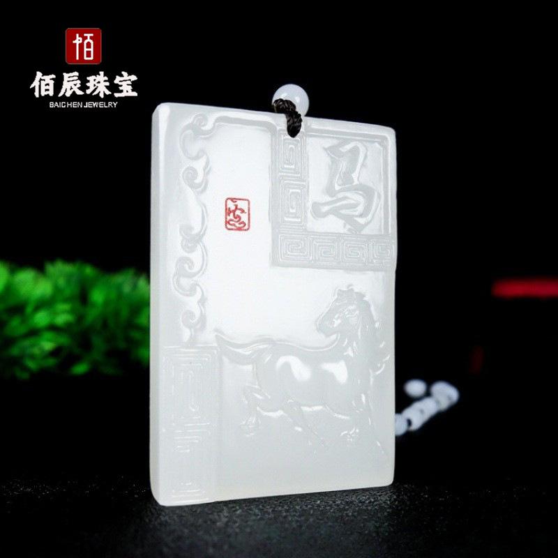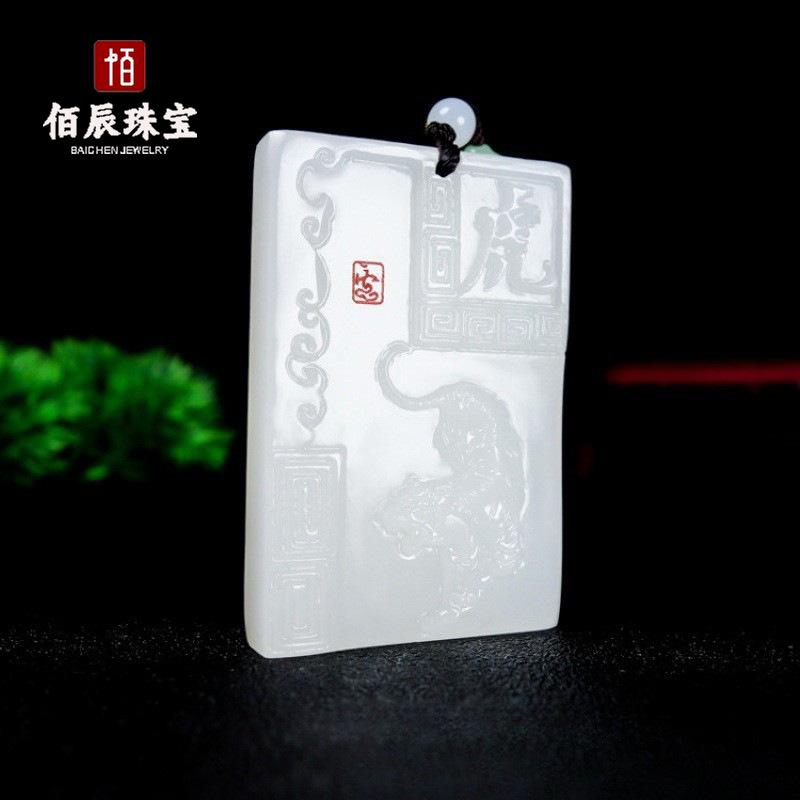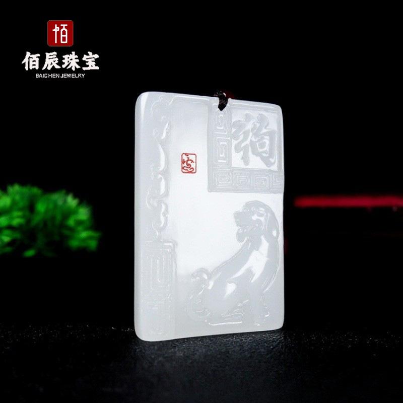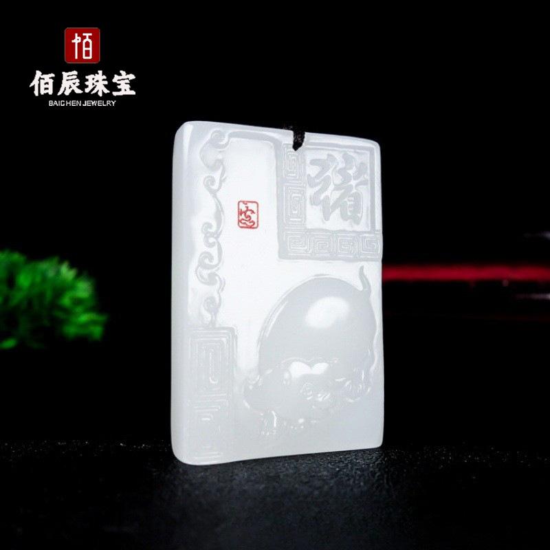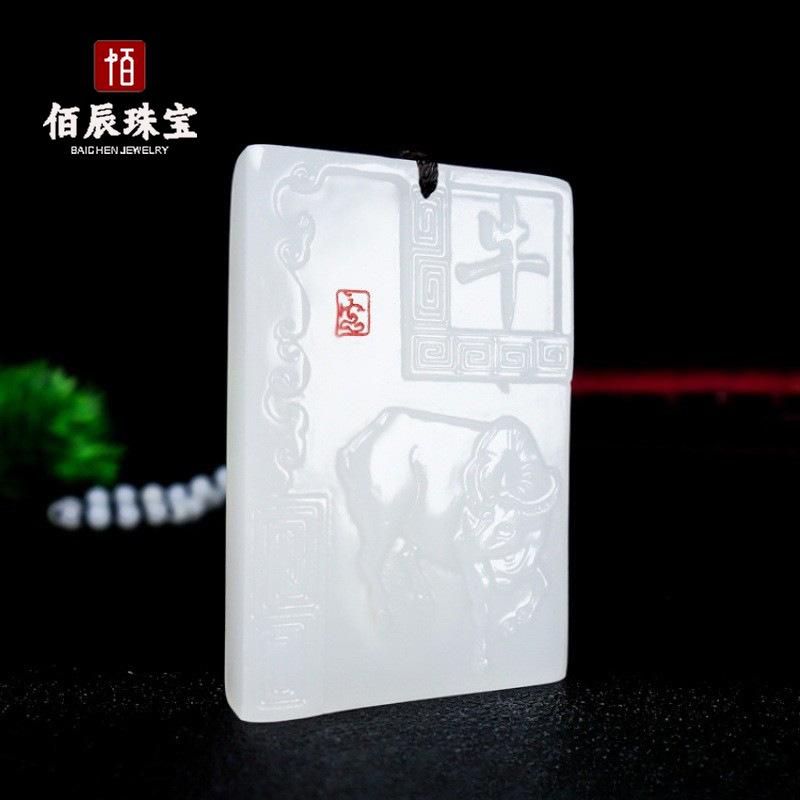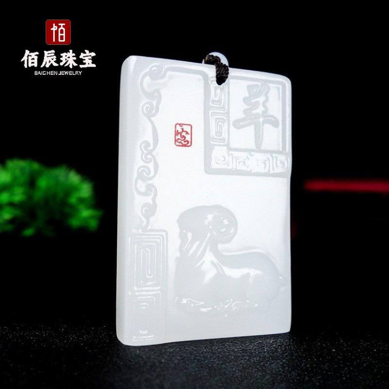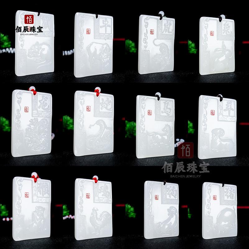 Jade Afegão Jade Branco Pingente Marca Quadrada Doze Signos do Zodíaco Jade Branco Gordura de Carneiro Natural Imitação Jade Branco Hotan Pingente de Jade