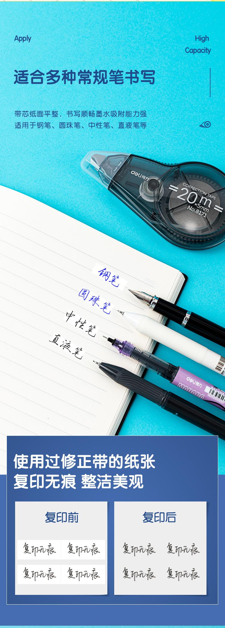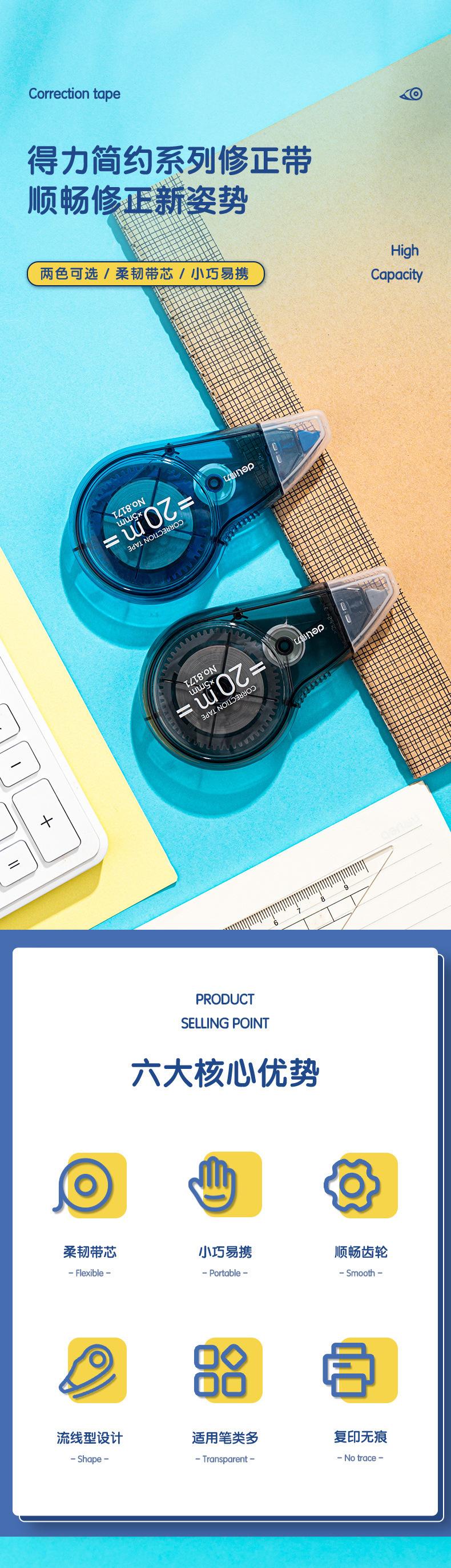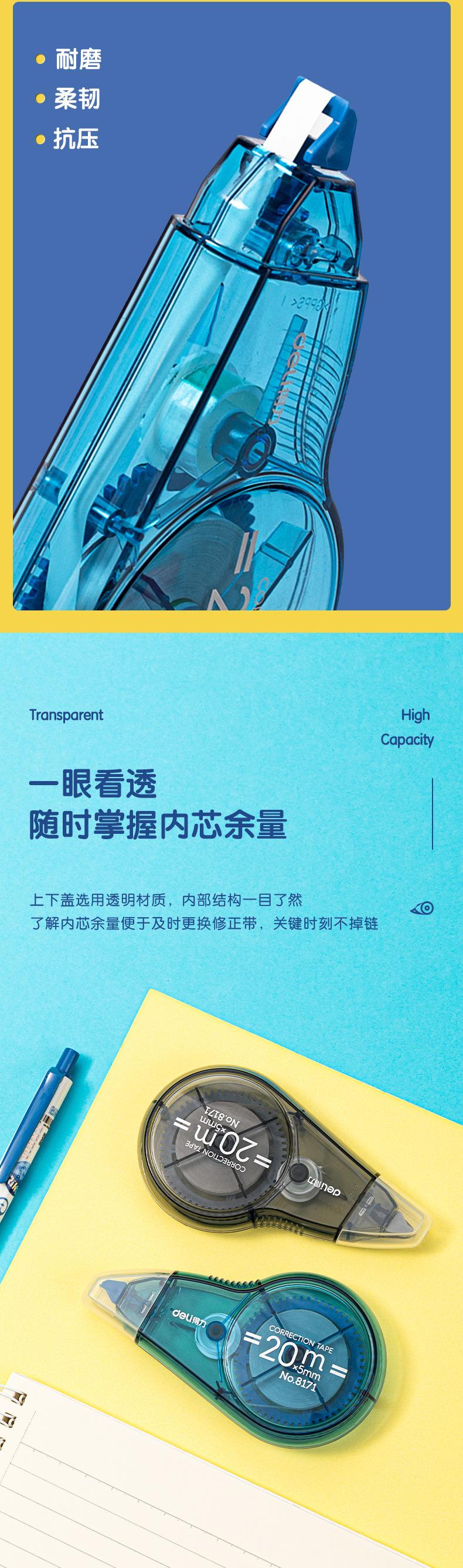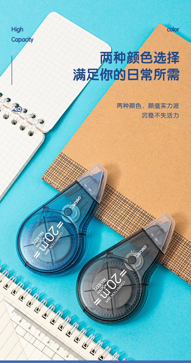 Deli 8171 fita corretiva 5mm * 20M cor aleatória grande capacidade fita corretiva estudante fita corretiva