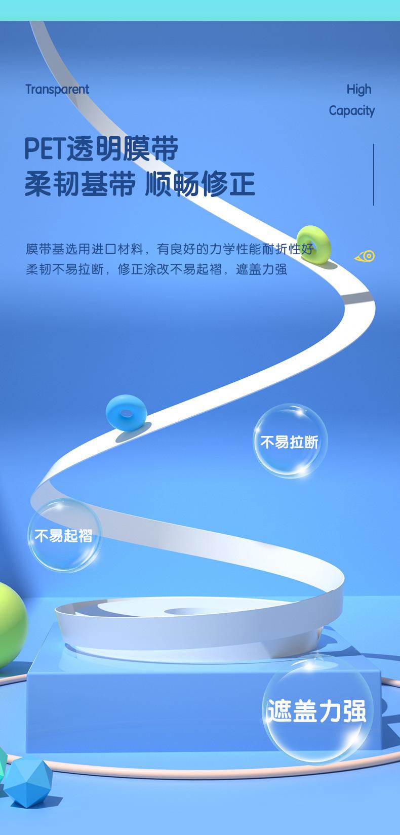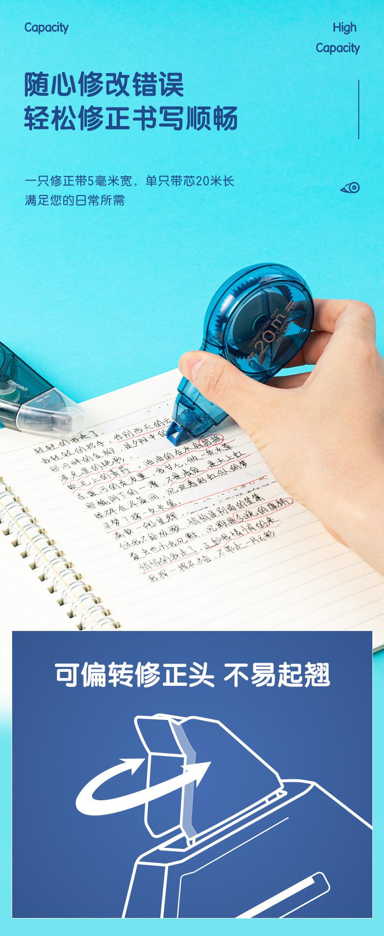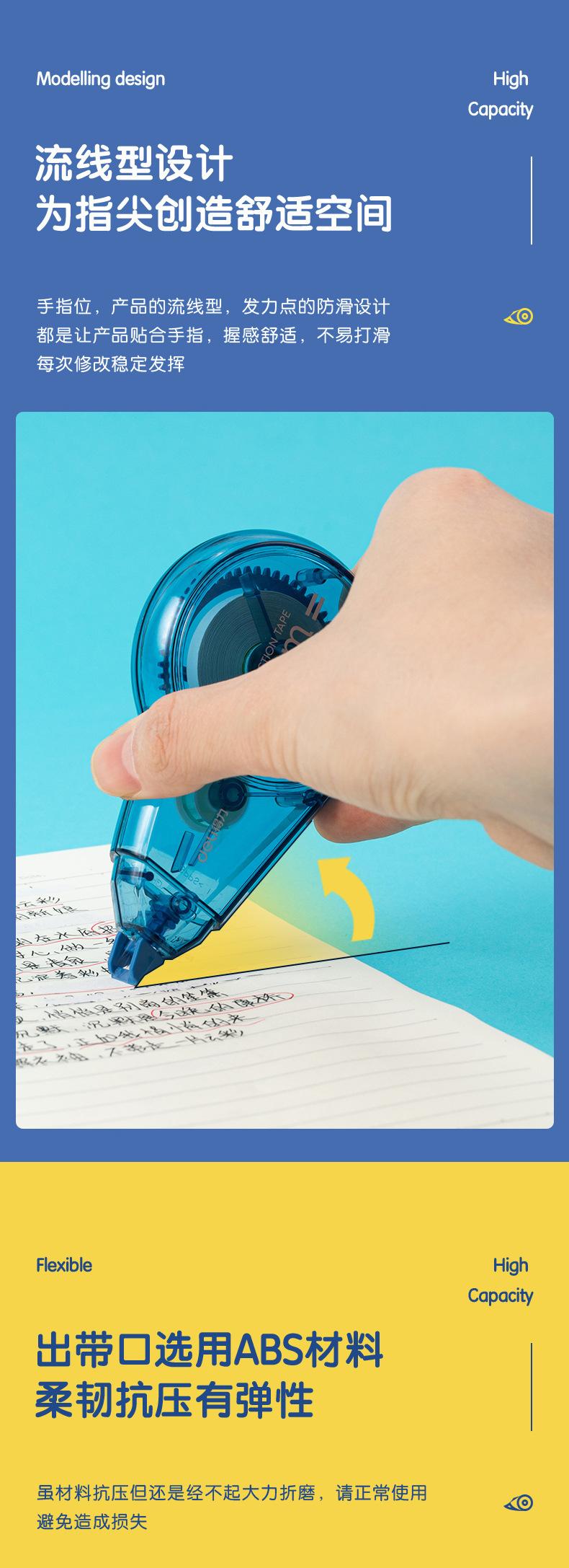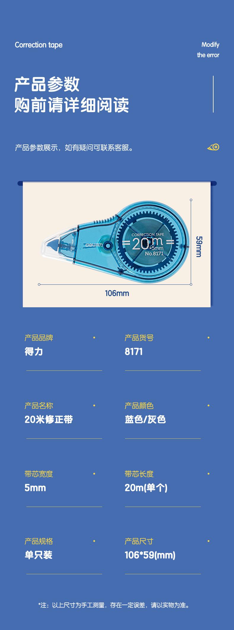 Deli 8171 fita corretiva 5mm * 20M cor aleatória grande capacidade fita corretiva estudante fita corretiva