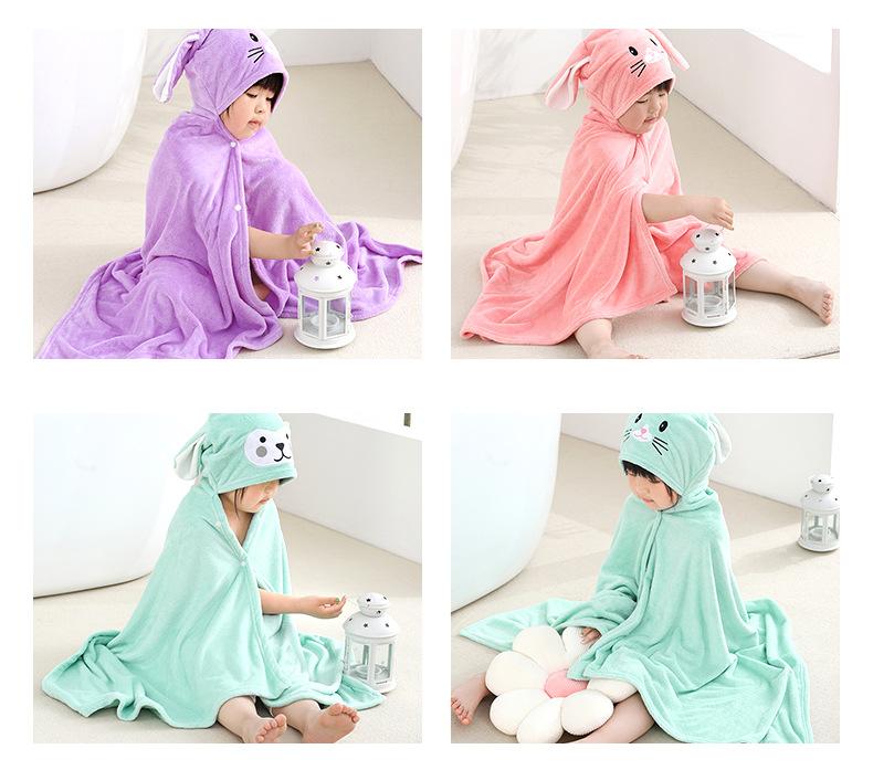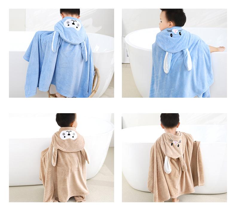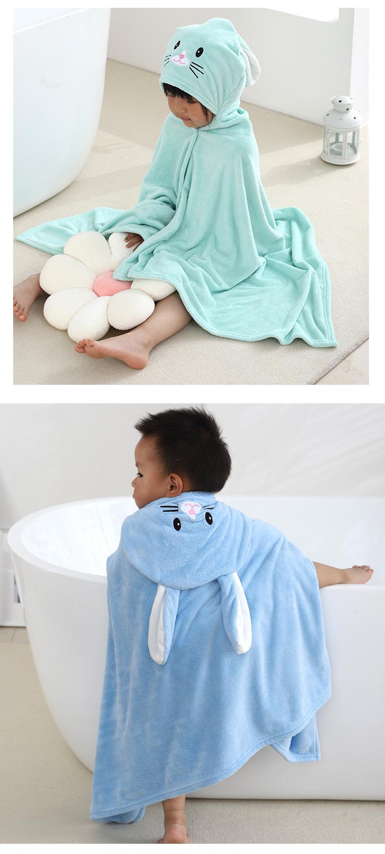Toalha de banho infantil com capuz Poncho Roupão de banho para bebê Cartoon Coral Fleece Banho macio Bebê vestindo poncho com capuz