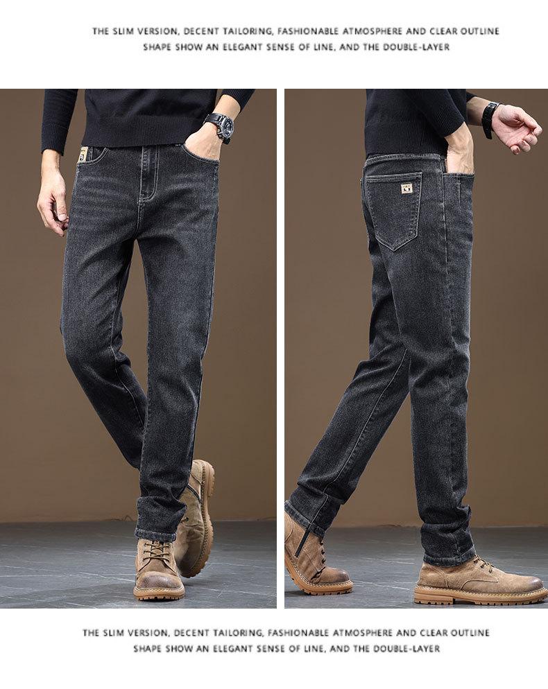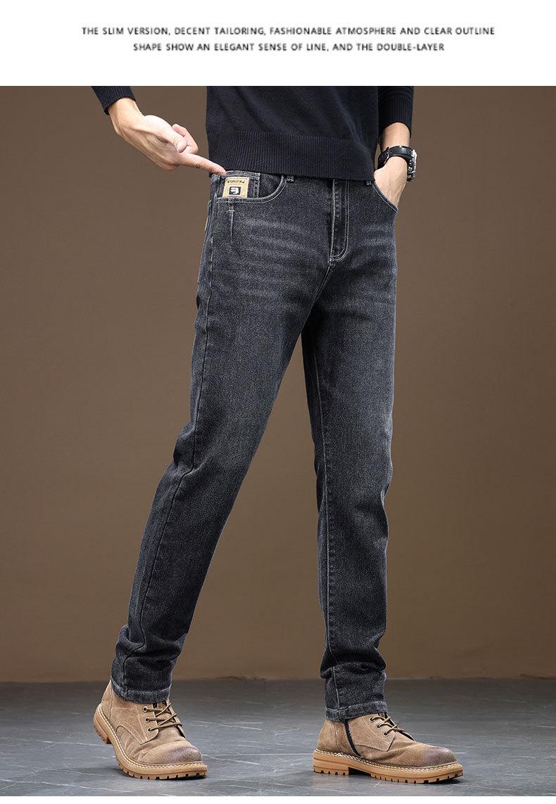 Jeans elásticos outono e inverno masculino 2023 Novo ajuste reto masculino moda todos combinando outono calças casuais