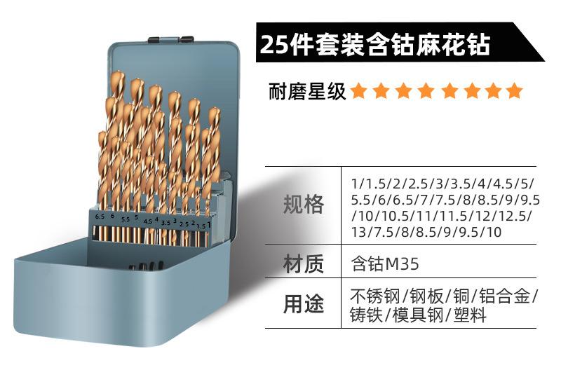 Dane Tools Broca de torção de aço inoxidável Conjunto de liga de cobalto duro de aço perfurador Broca manual Ferro multifuncional