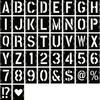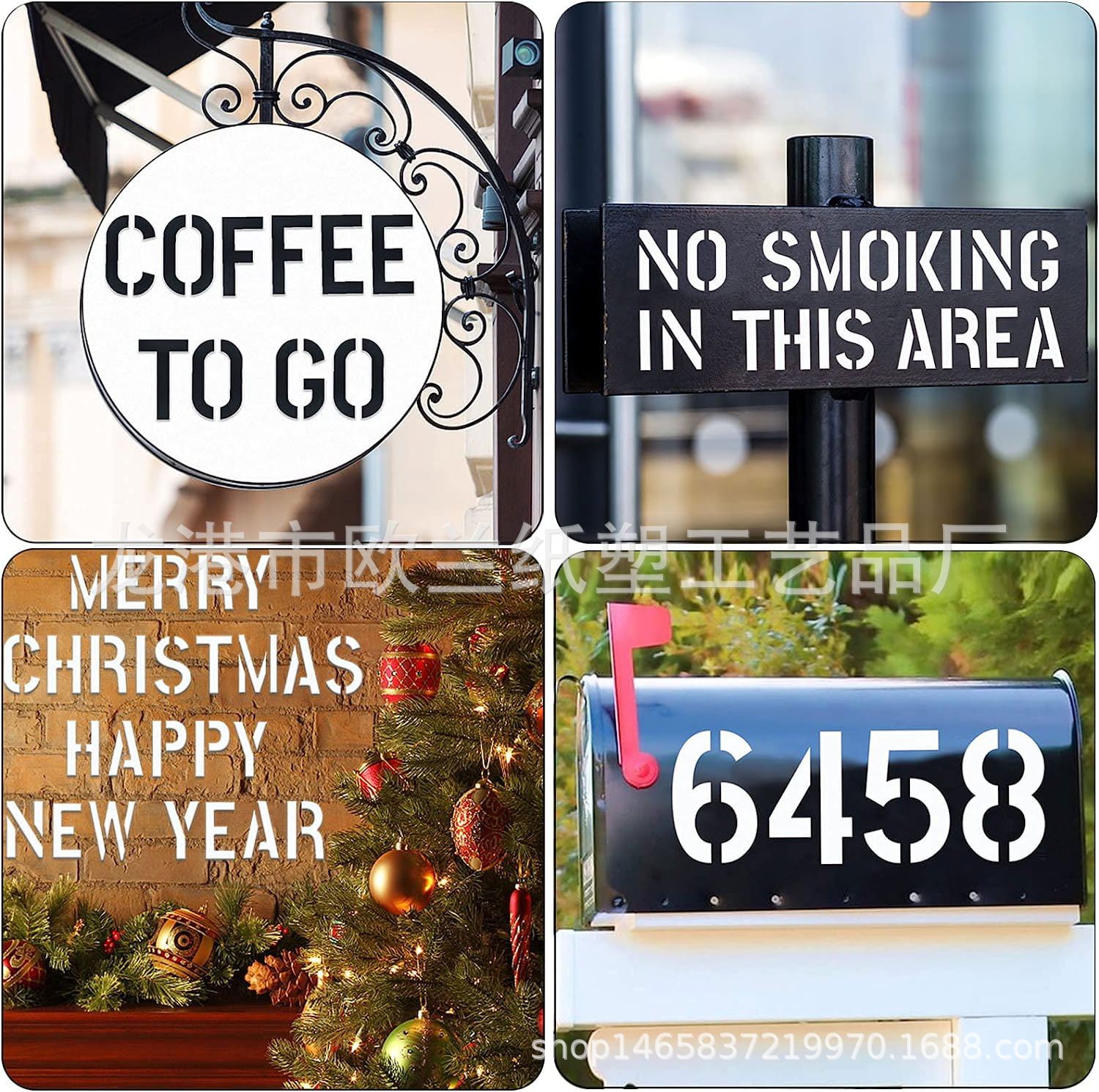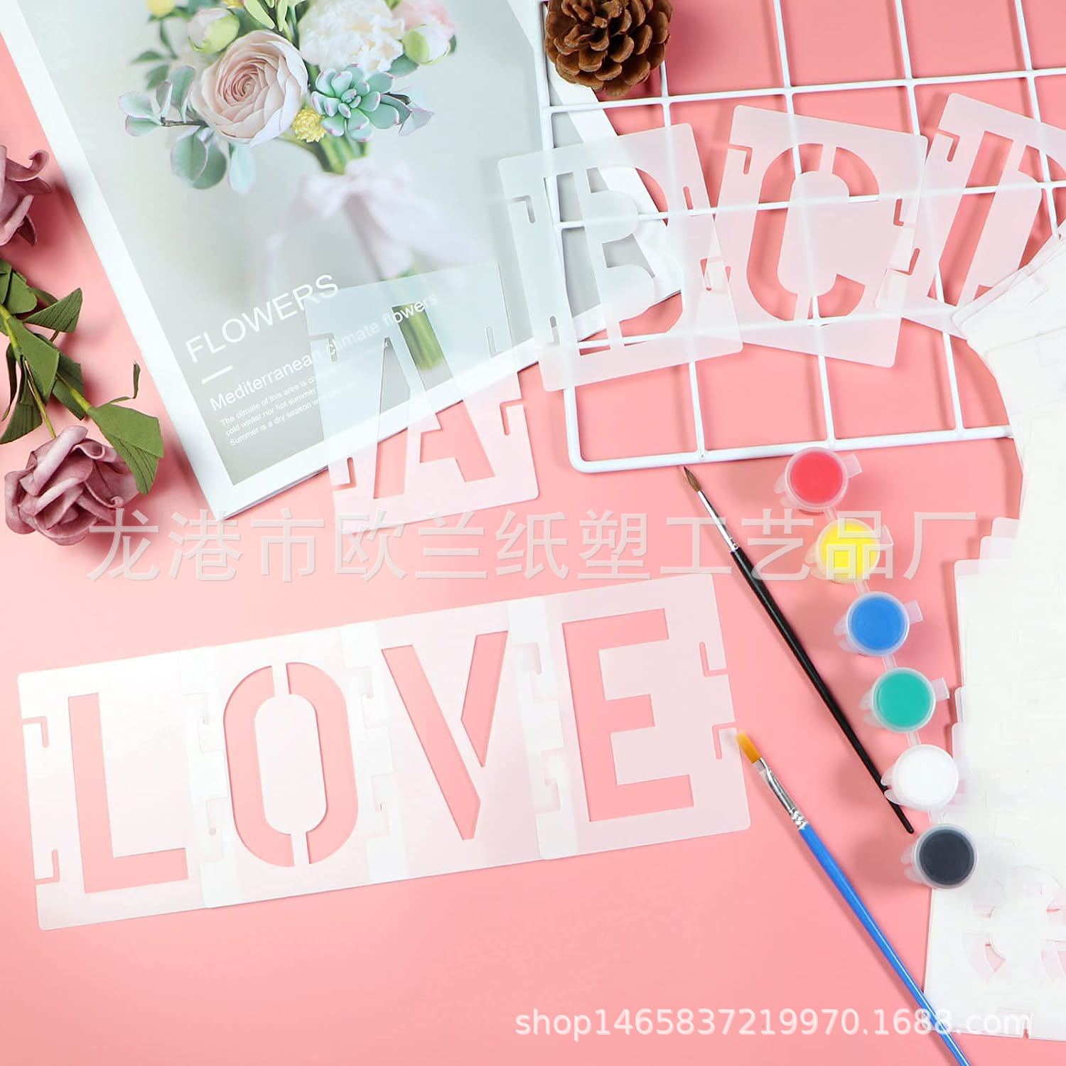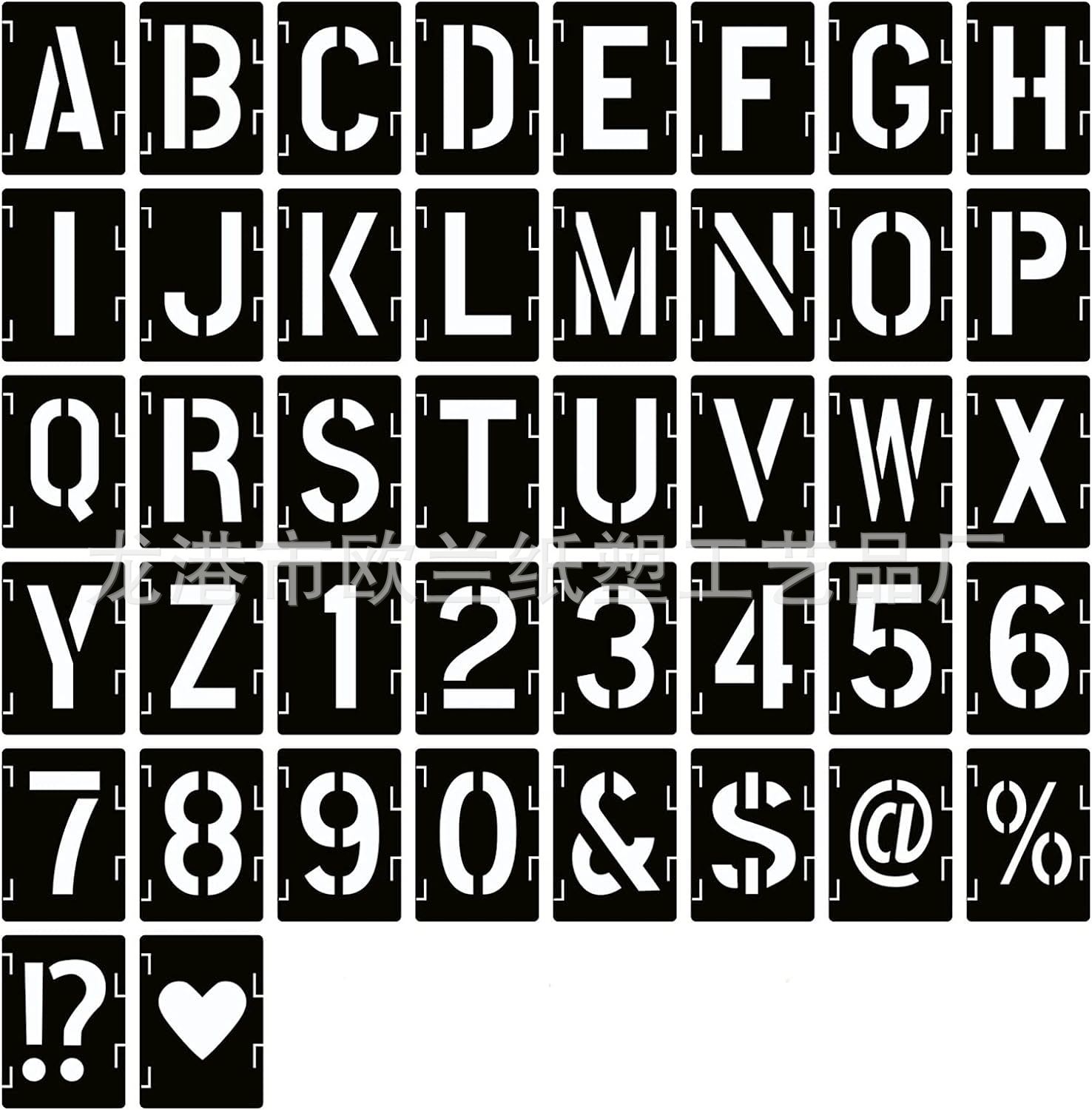 Nome do produto: 42PCS letras inglesas, símbolos, números, fivelas interligadas, pintura em spray repetível, grafite, pintura DIY, modelo oco