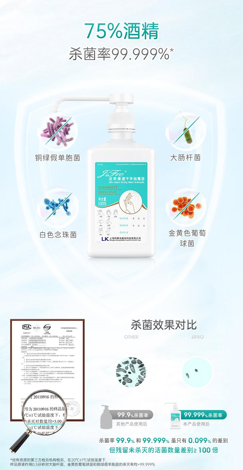 Jiefurou Desinfetante para Mãos de Secagem Rápida Sem Enxágue 500ml Spray de Bico Longo Desinfetante Sanitário para Mãos Antibacteriano e Bacteriostático