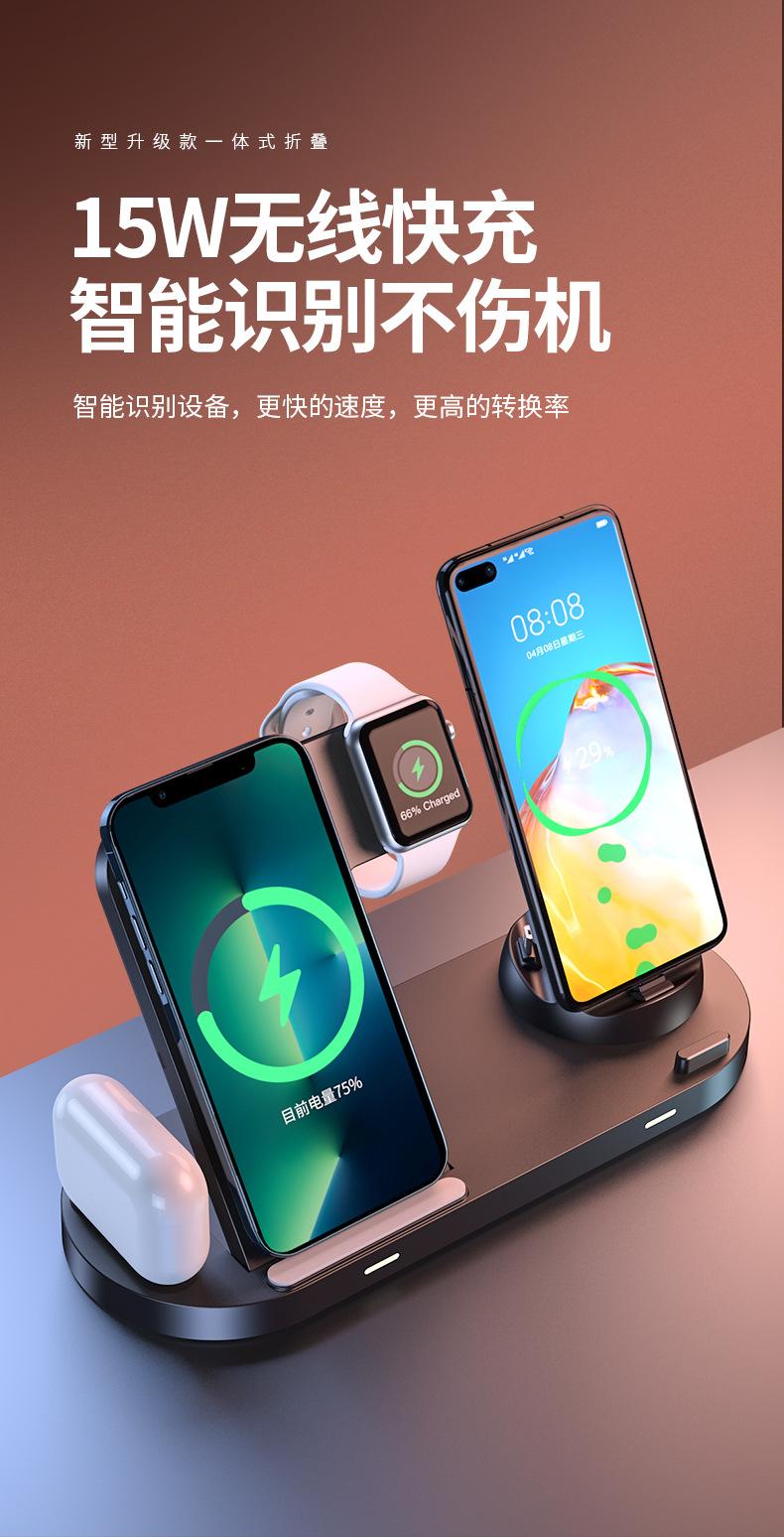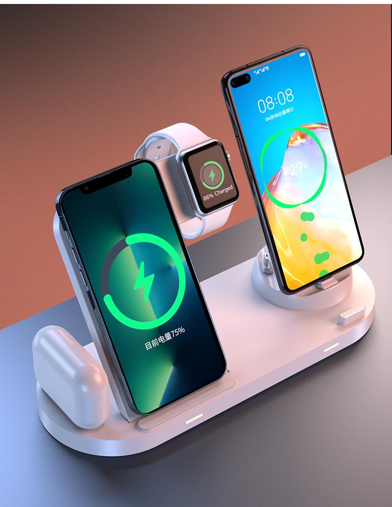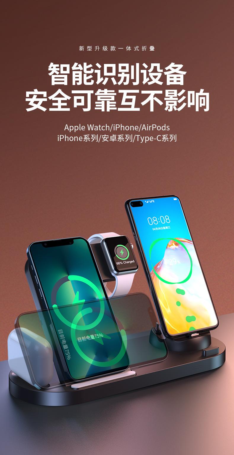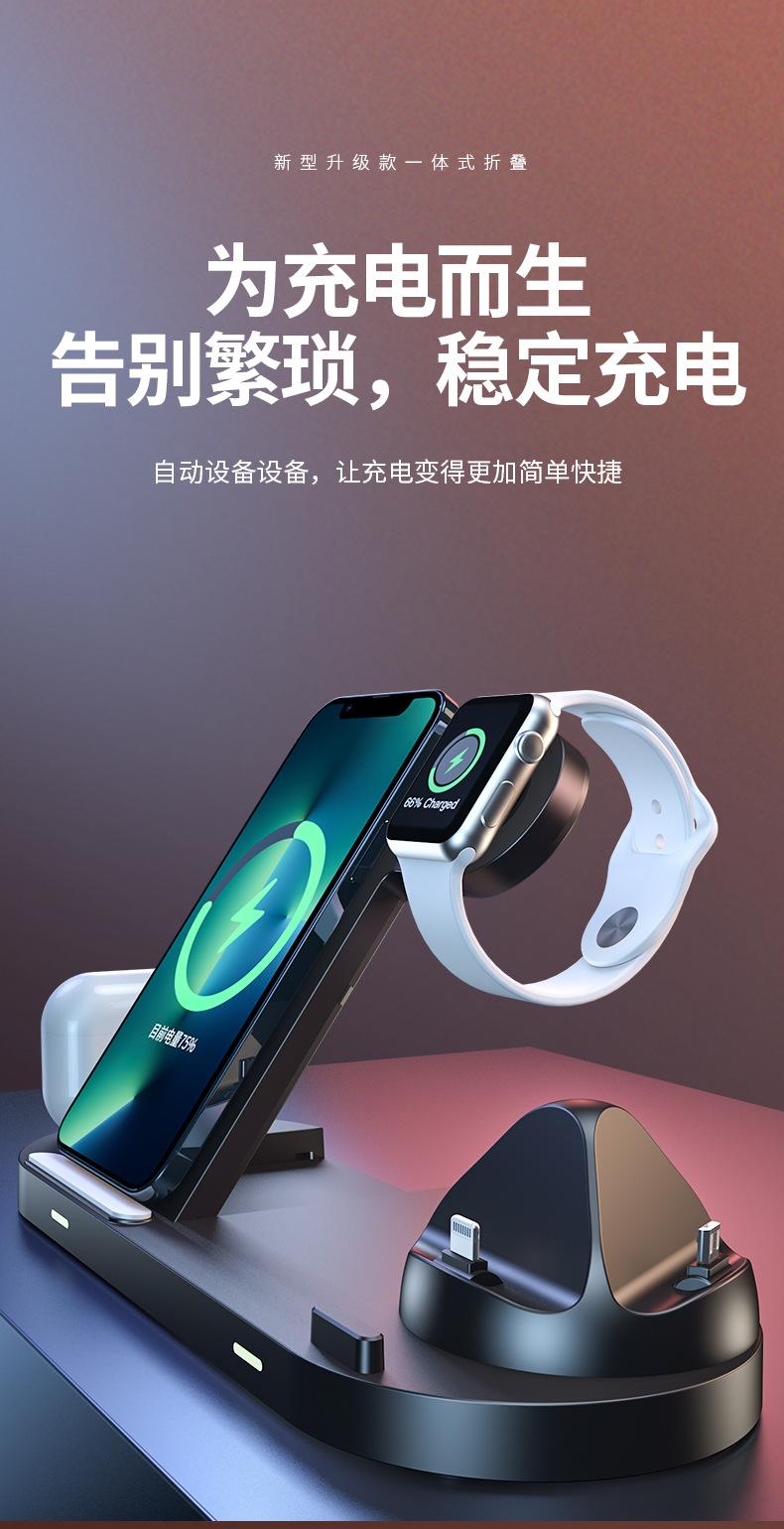Compre Novo carregador sem fio seis em um, sucção magnética, display digital, multifuncional, relógio, fone de ouvido, carregador sem fio, suporte dobrável no atacado no Joom.pro