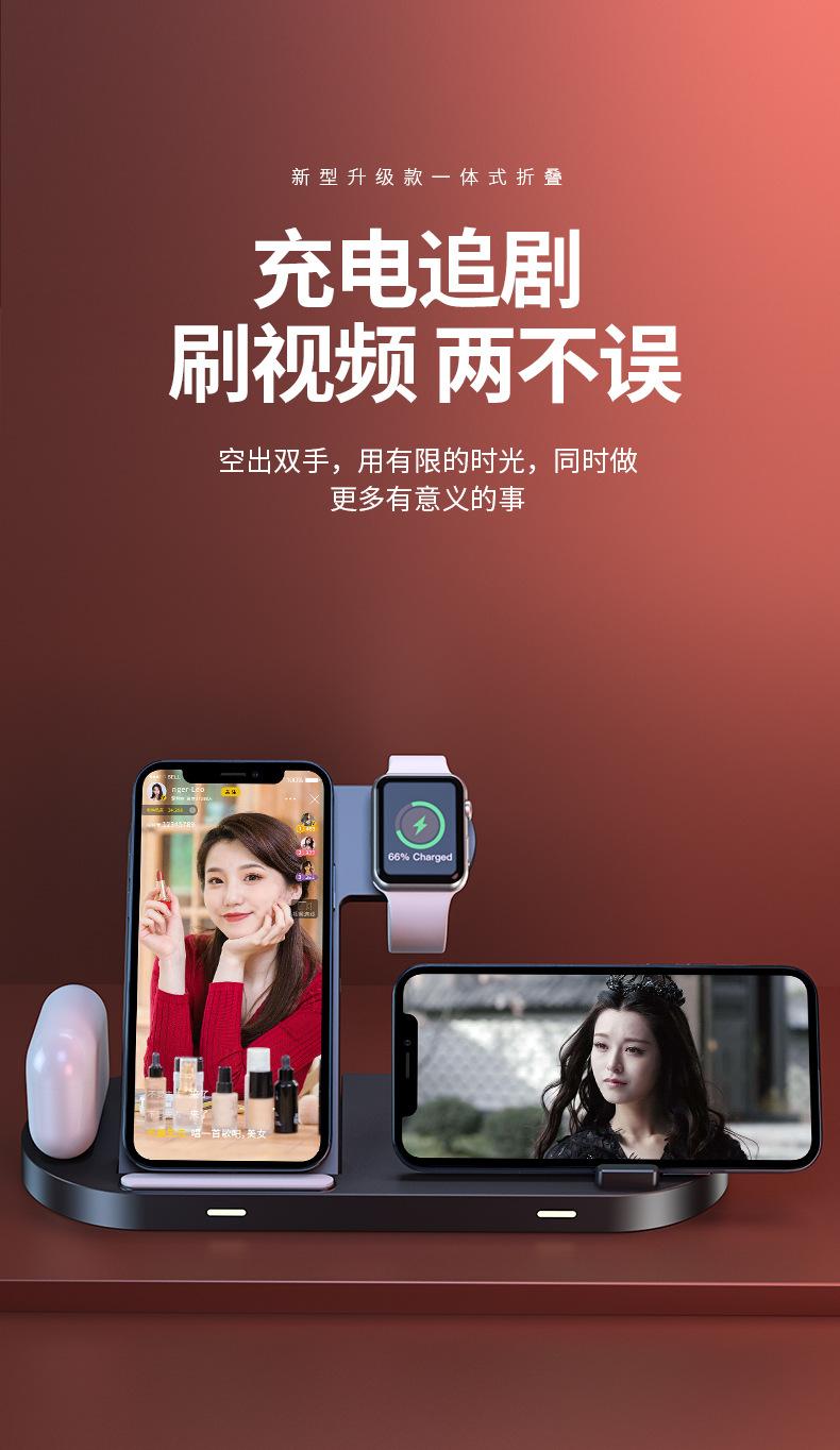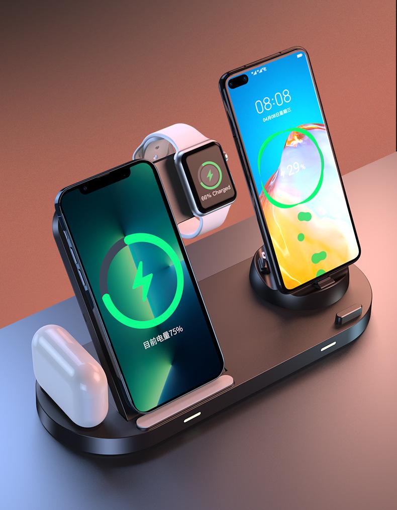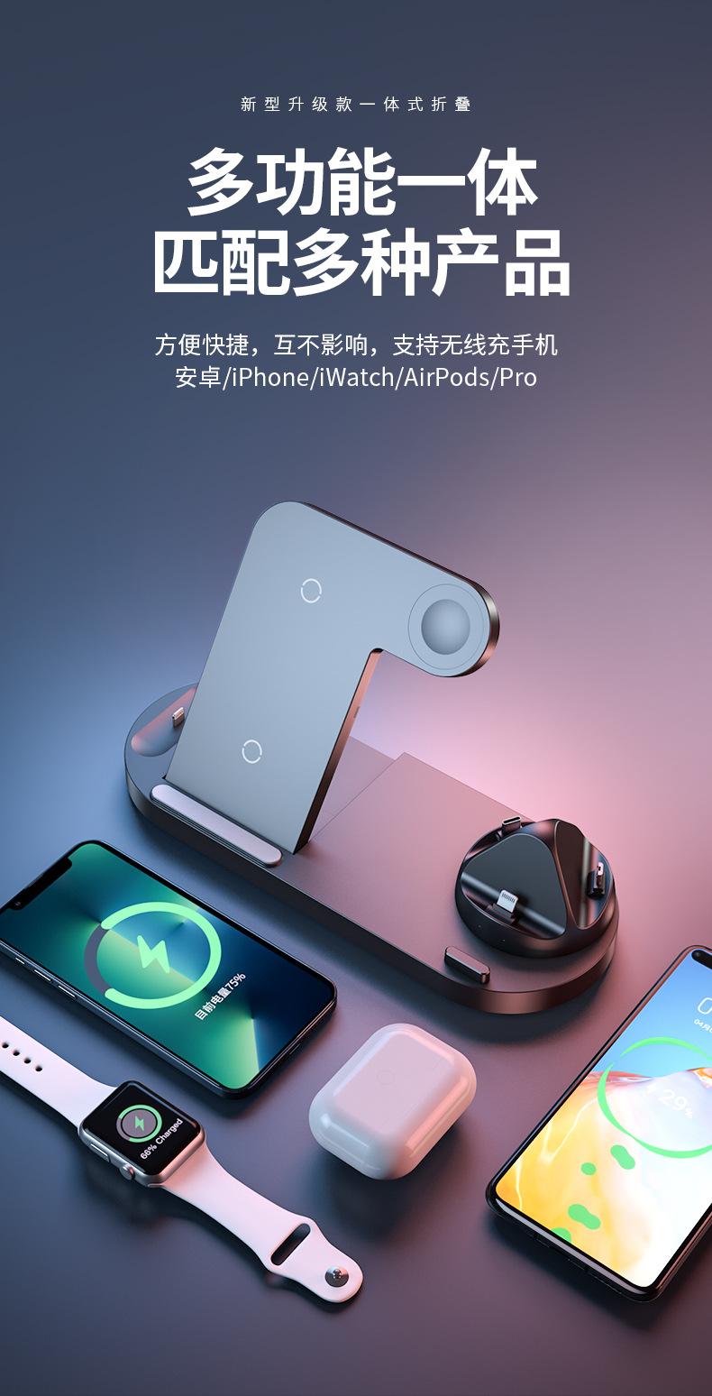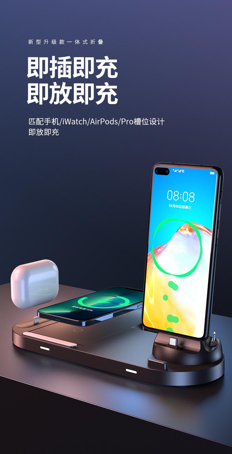 Compre Novo carregador sem fio seis em um, sucção magnética, display digital, multifuncional, relógio, fone de ouvido, carregador sem fio, suporte dobrável no atacado no Joom.pro
