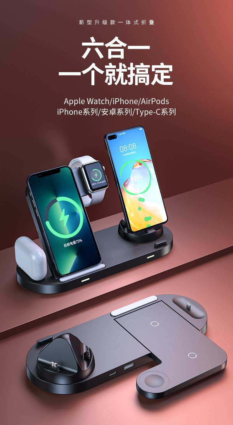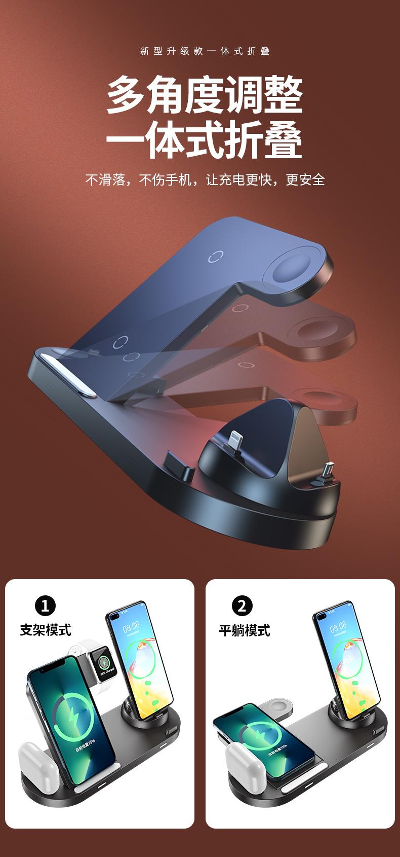 Novo carregador sem fio seis em um, sucção magnética, display digital, multifuncional, relógio, fone de ouvido, carregador sem fio, suporte dobrável