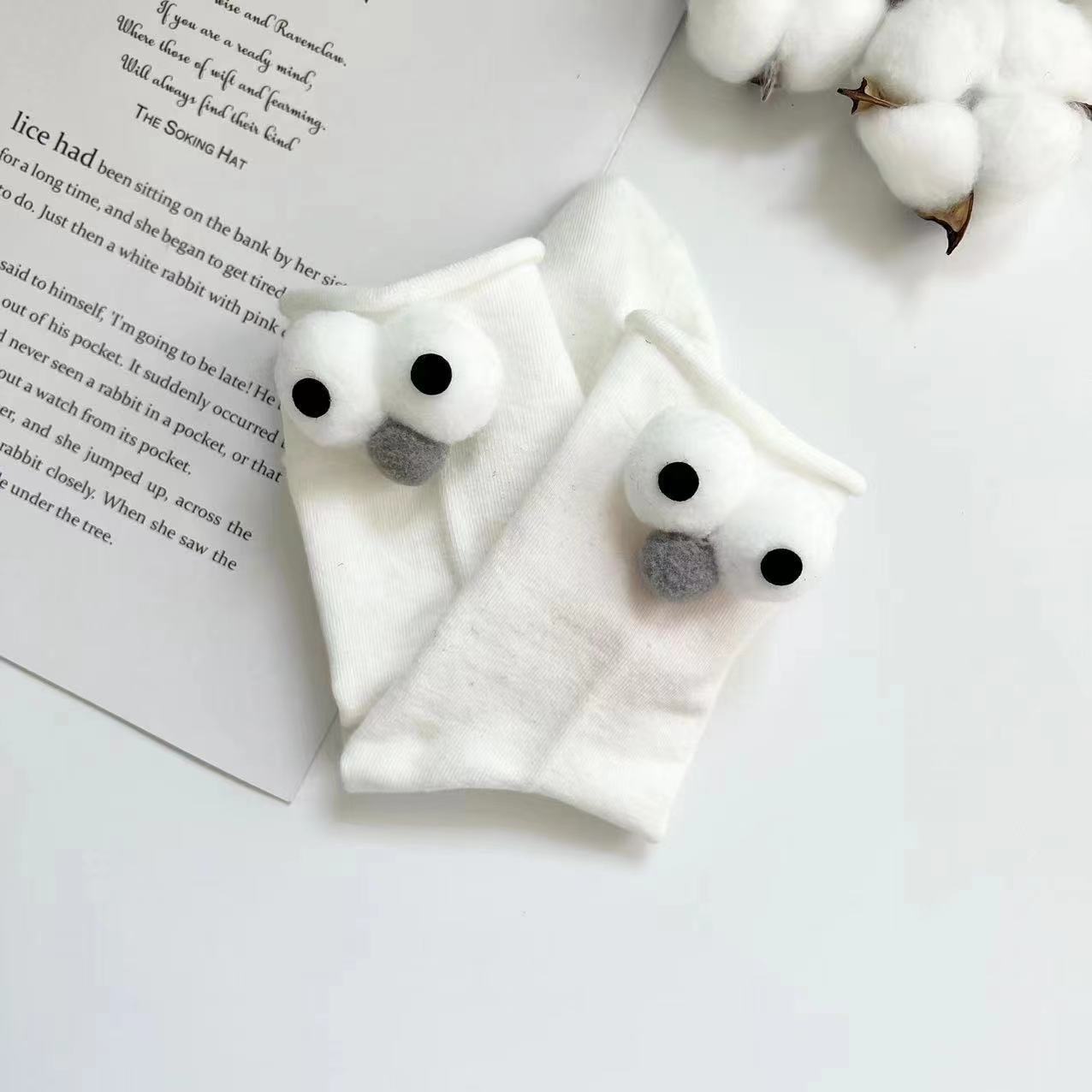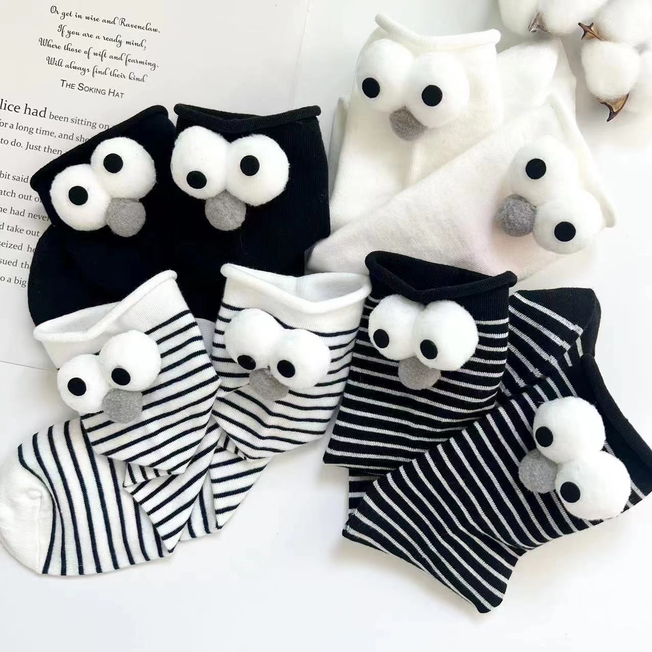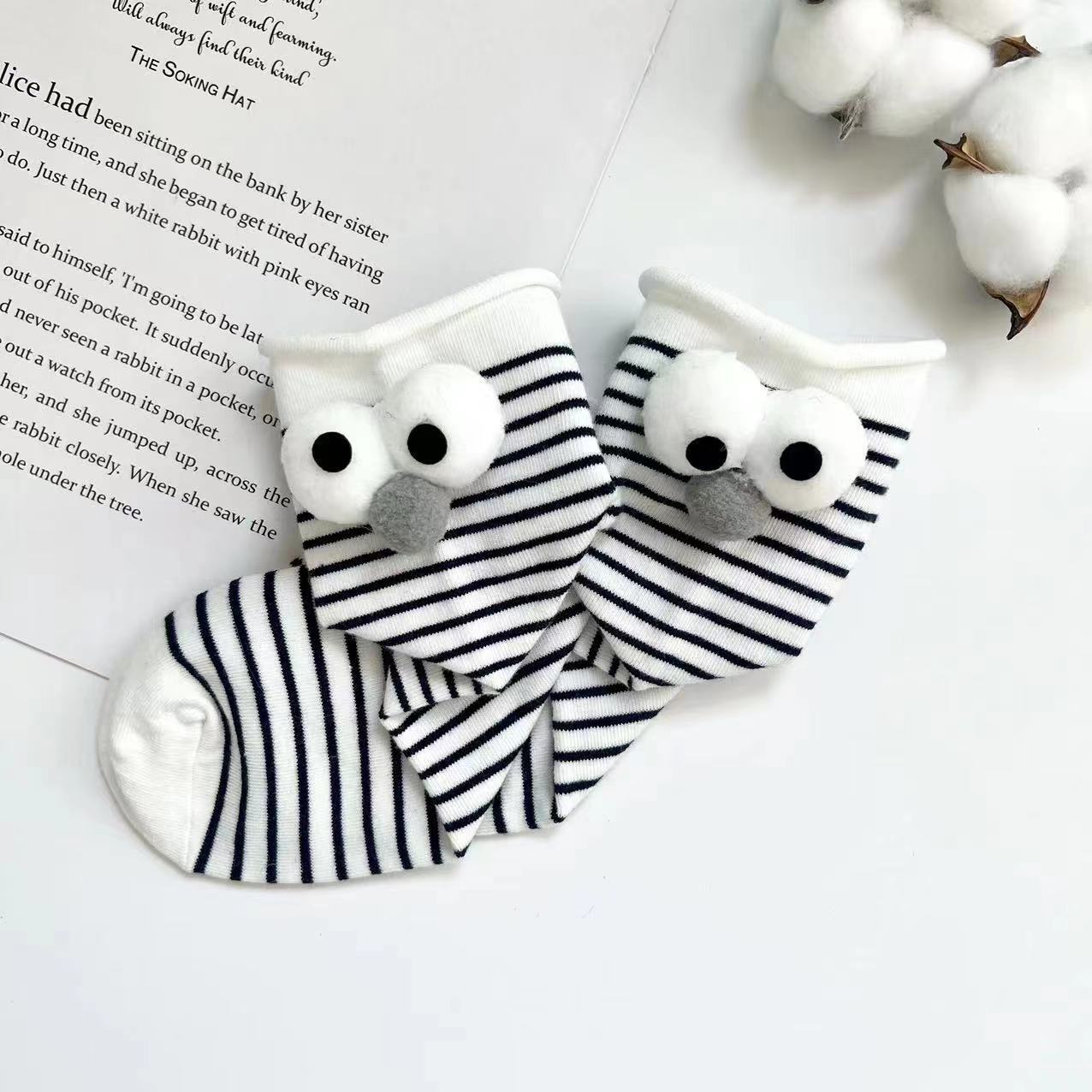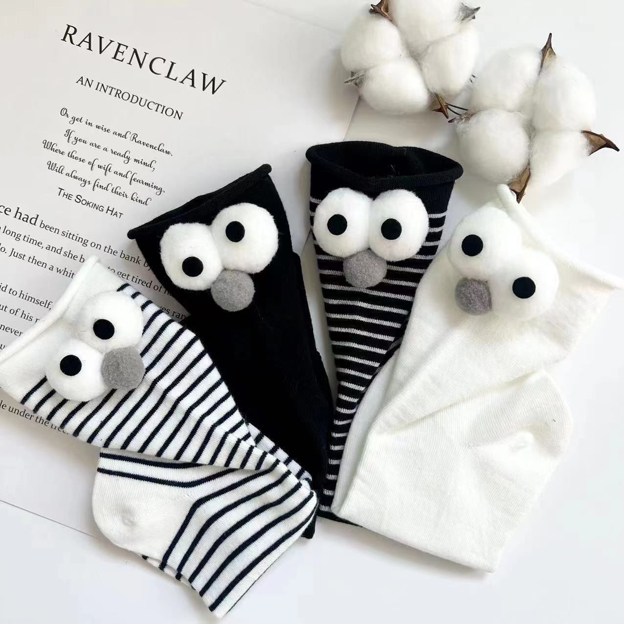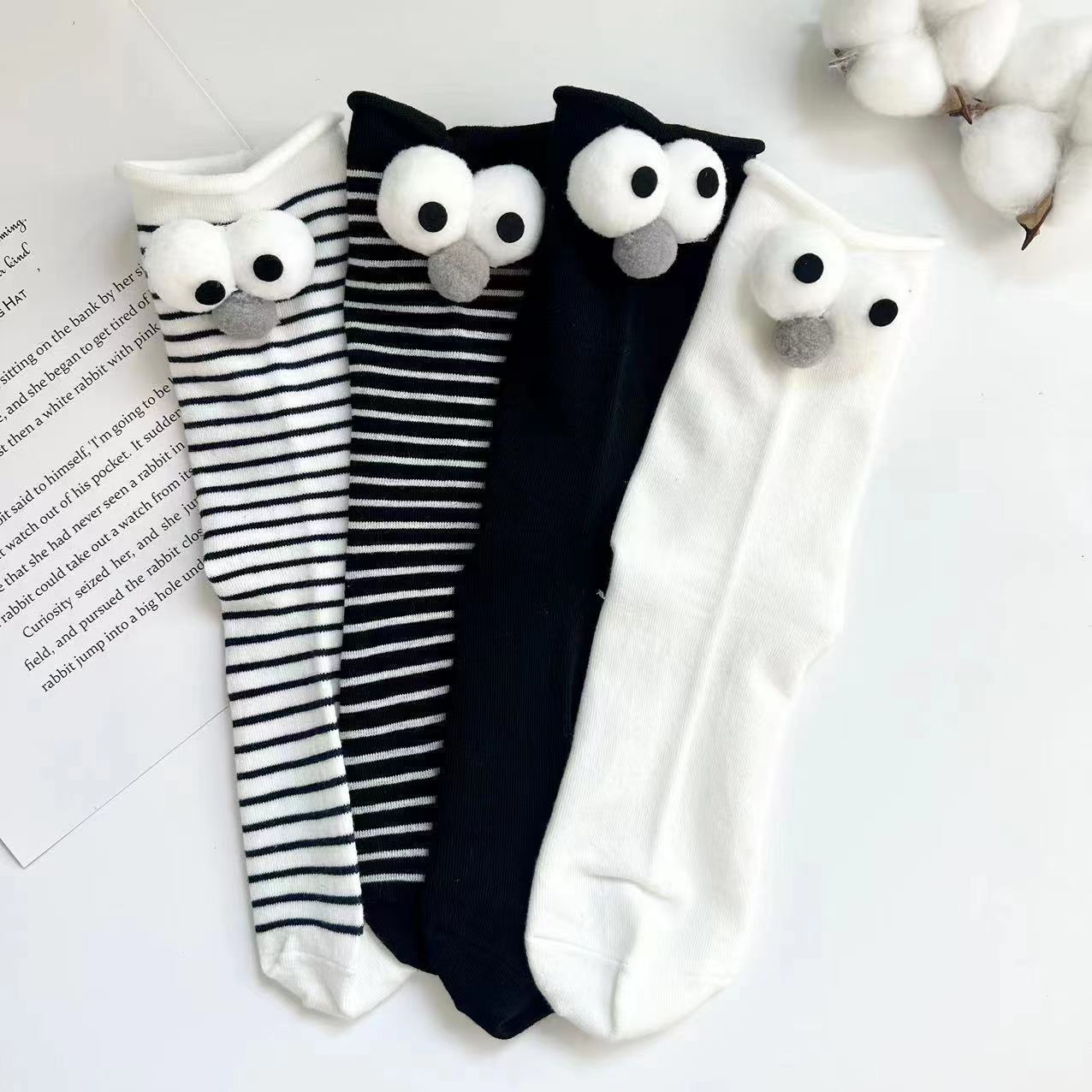 Compre Meias de joias novas para senhoras, estilo coreano, tubo longo, tridimensional, olhos grandes, meias femininas engraçadas, listradas, todas as combinações, meias japonesas cacheadas no atacado no Joom.pro
