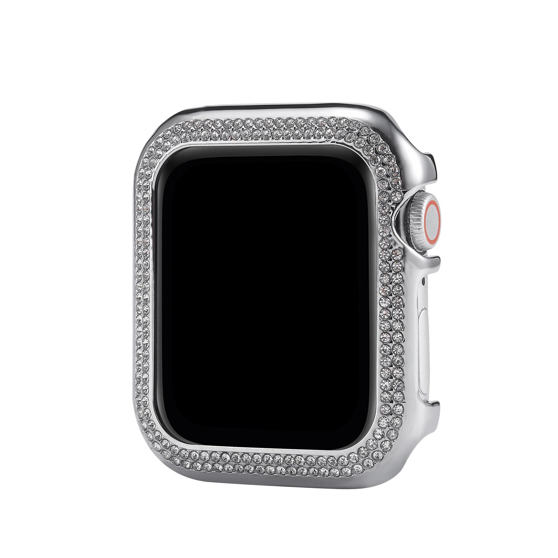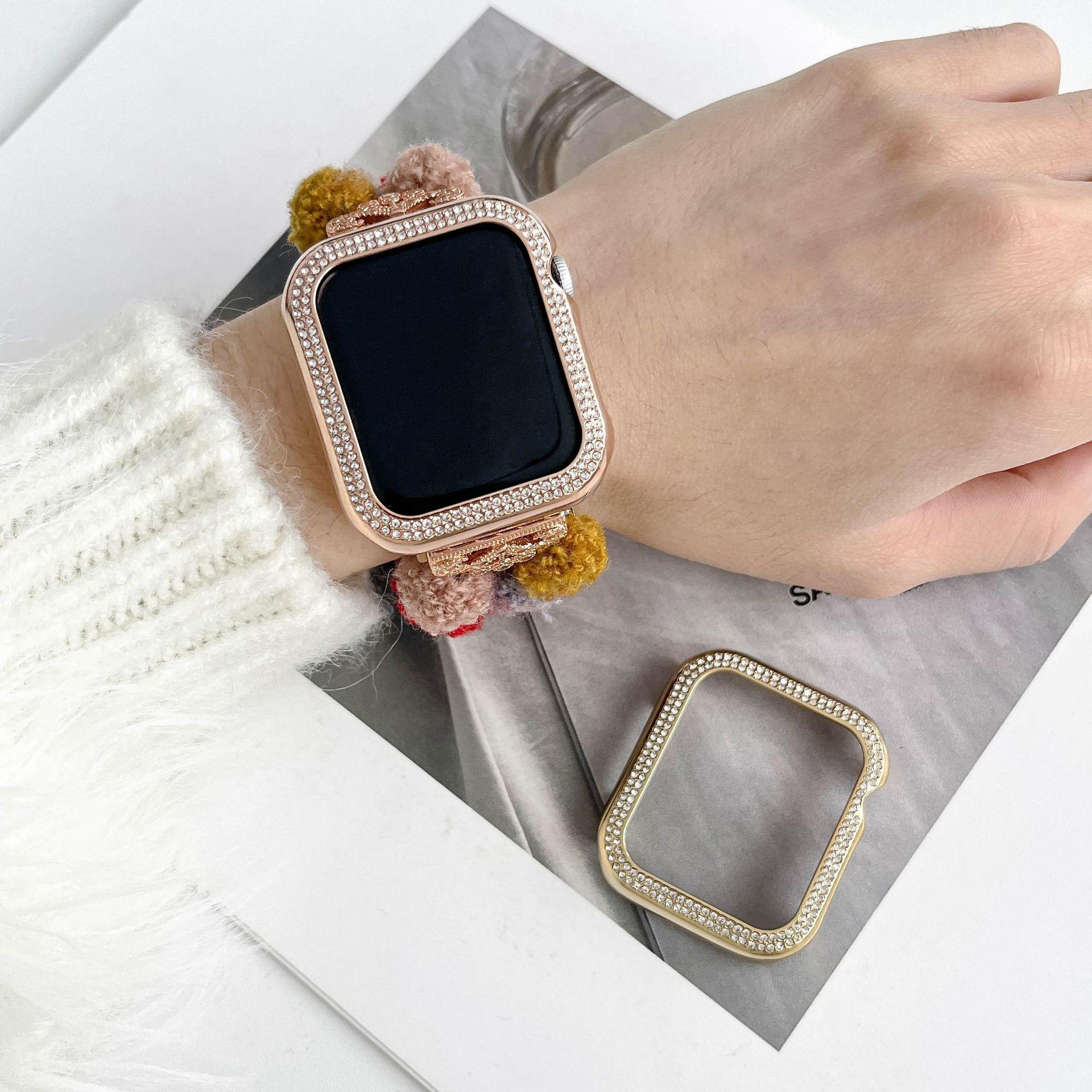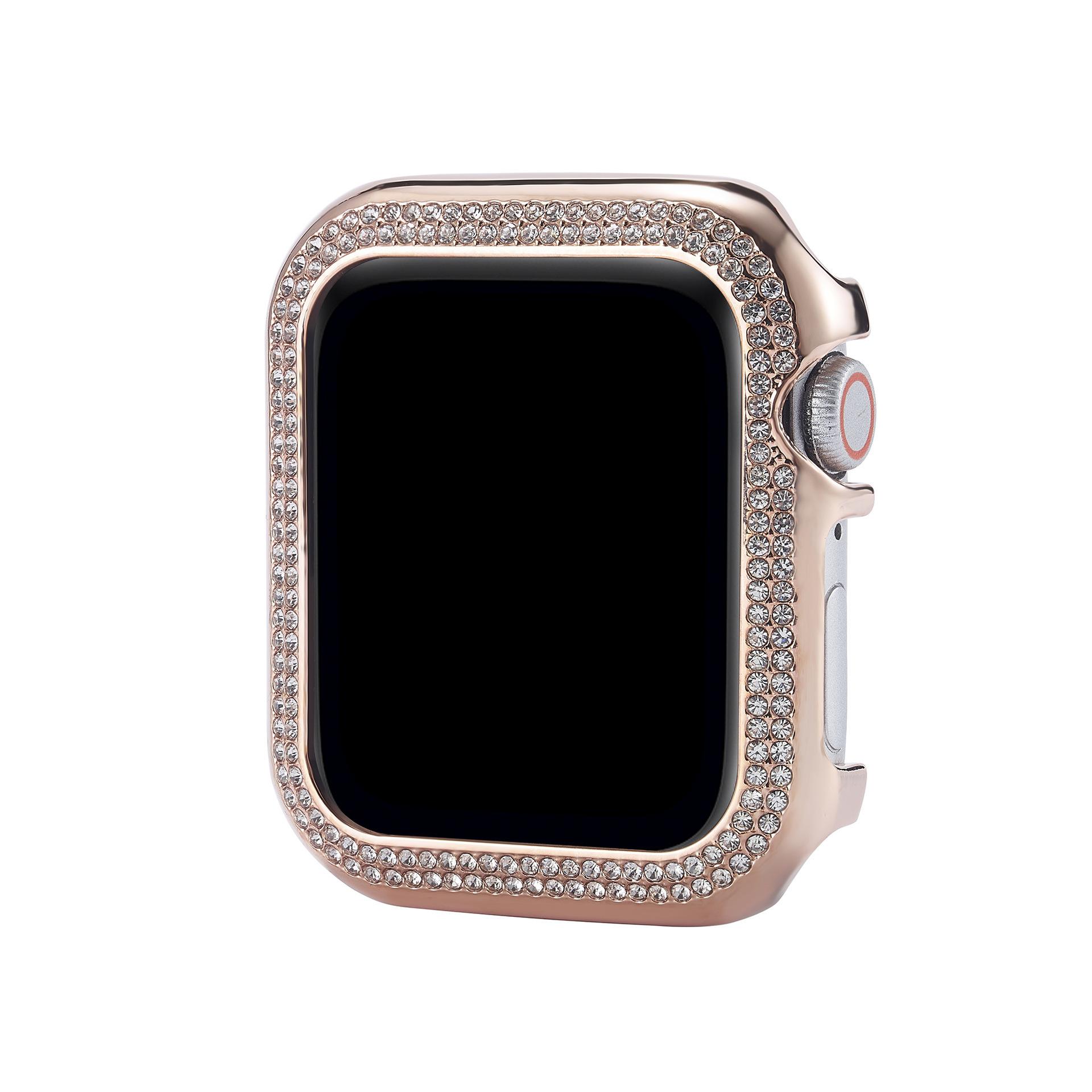 Compre Caixa de Relógio de Diamantes de Dupla Fileira Incrustada de Diamantes com Moldura Vazada Adequada para Apple Watch 98ª Geração SE 10ª Geração Estojo Protetor no atacado no Joom.pro
