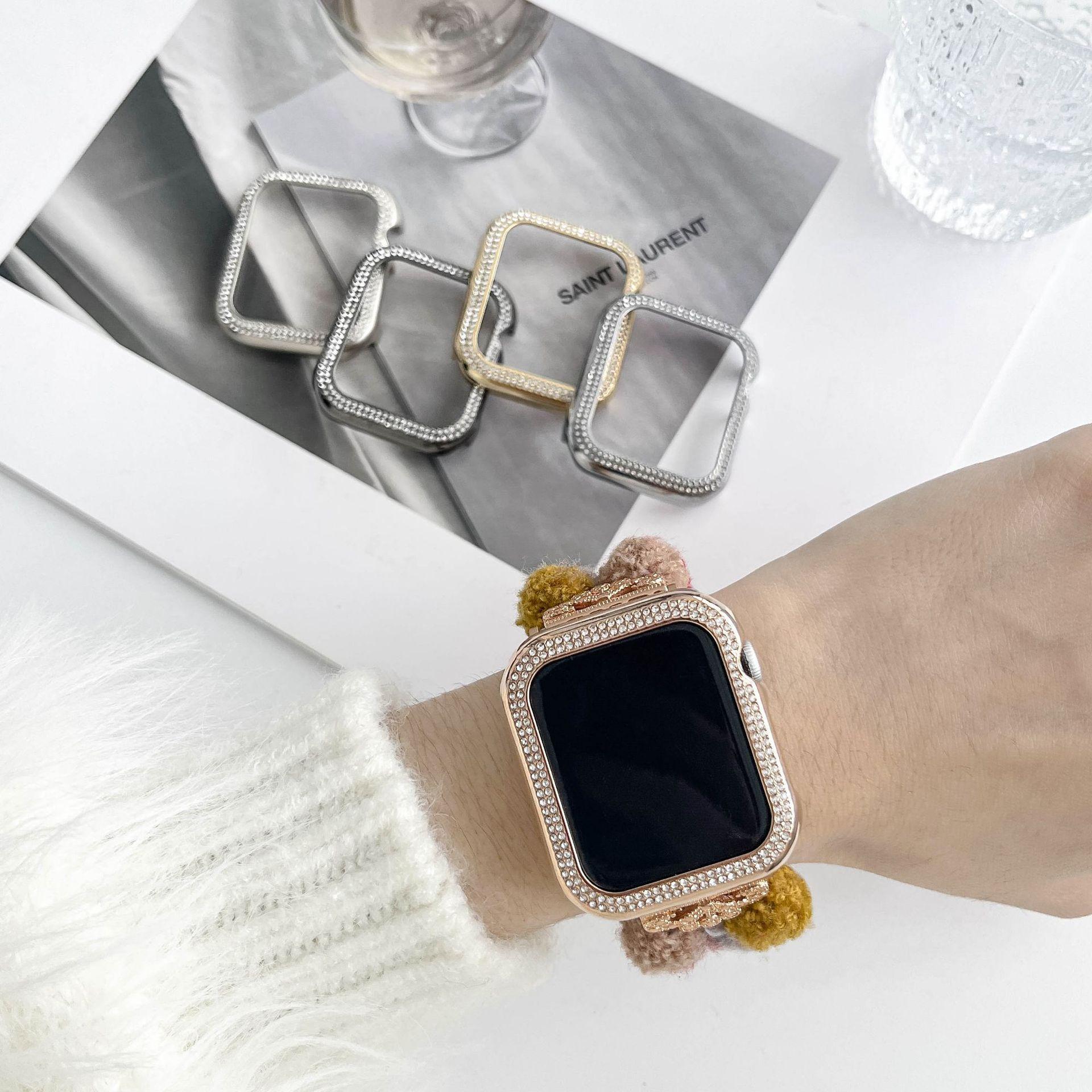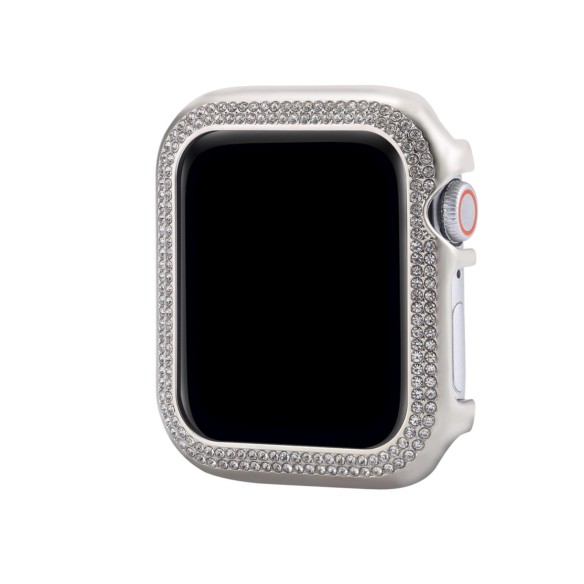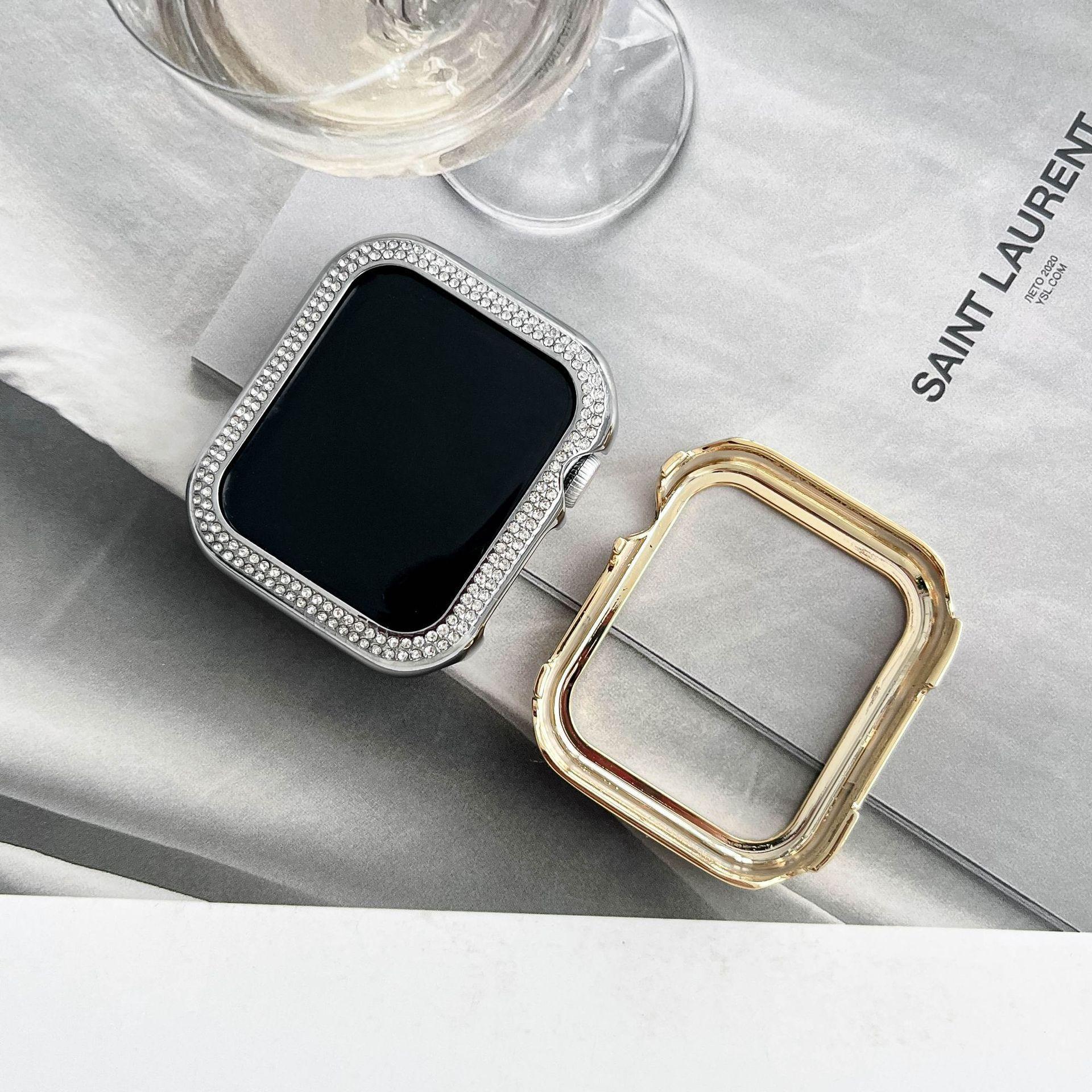 Compre Caixa de Relógio de Diamantes de Dupla Fileira Incrustada de Diamantes com Moldura Vazada Adequada para Apple Watch 98ª Geração SE 10ª Geração Estojo Protetor no atacado no Joom.pro