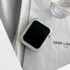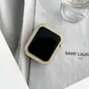 Caixa de Relógio de Diamantes de Dupla Fileira Incrustada de Diamantes com Moldura Vazada Adequada para Apple Watch 98ª Geração SE 10ª Geração Estojo Protetor