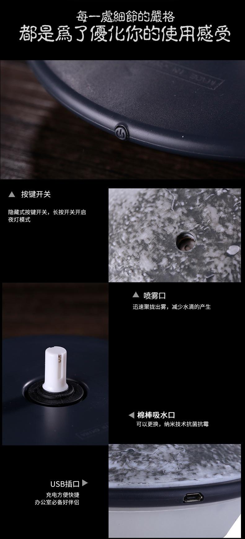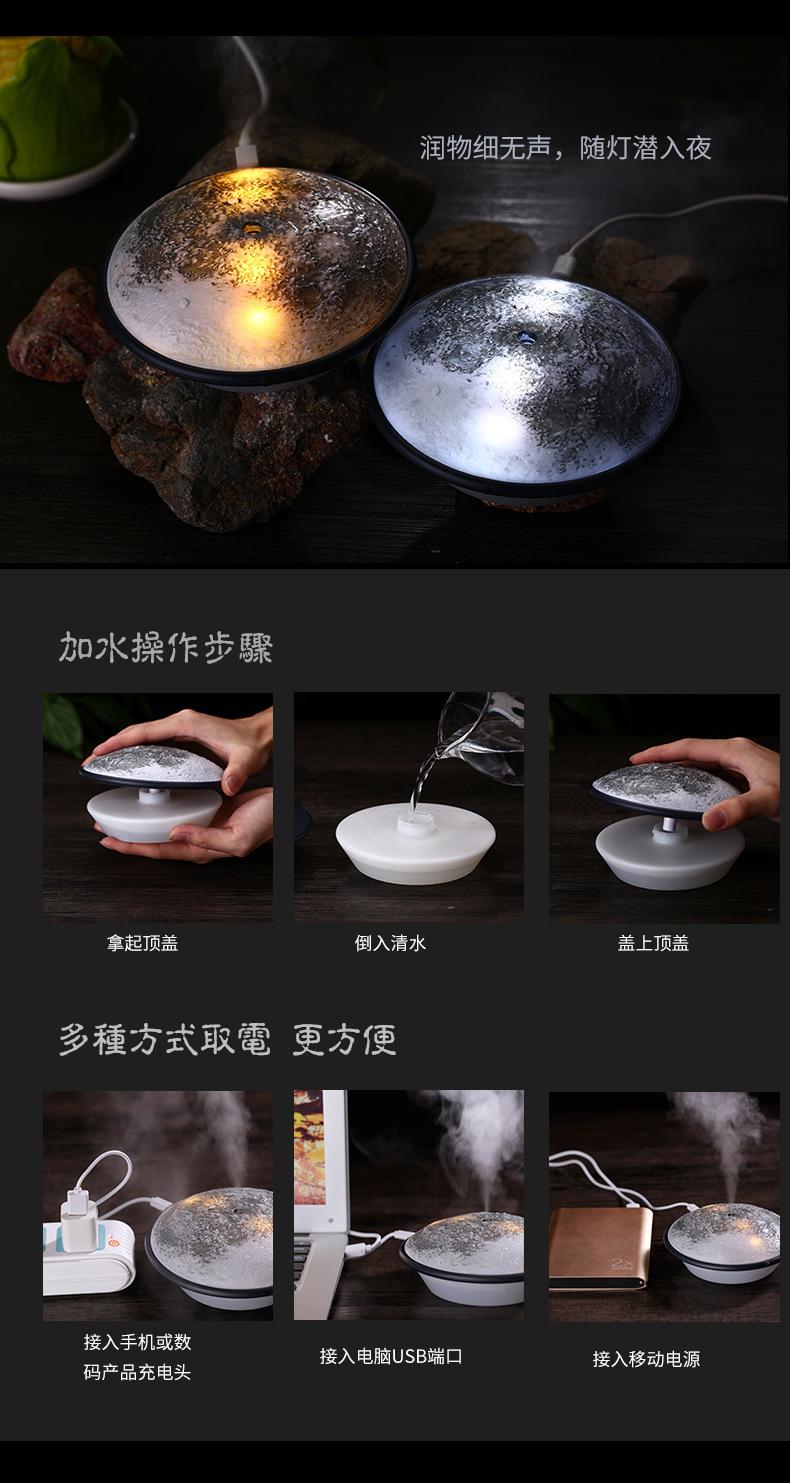 O produto vem de série com: um umidificador USB, um cabo de dados e um manual em chinês e inglês.