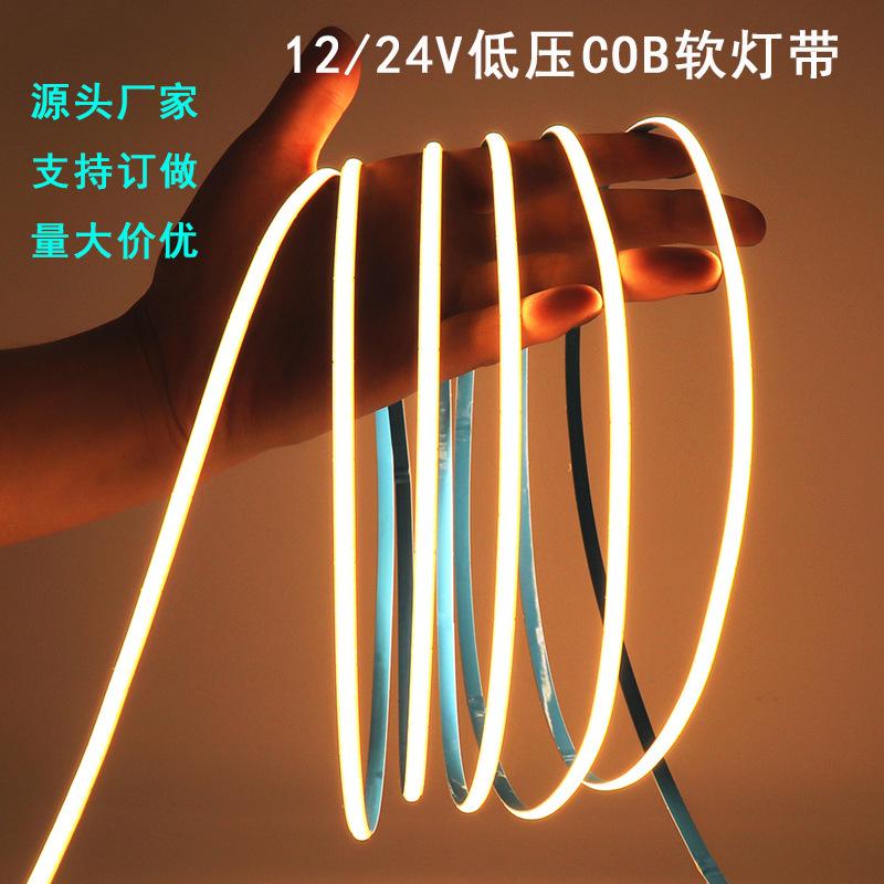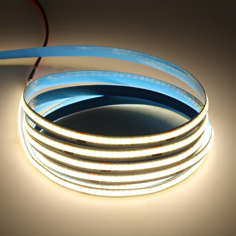 Fita de Luz COB 12/24V 8mm 320 Luzes Canal de Alumínio Fita de Luz Flexível Decoração de Sala de Estar Armário Autoadesivo Luz Linear Luz Branca