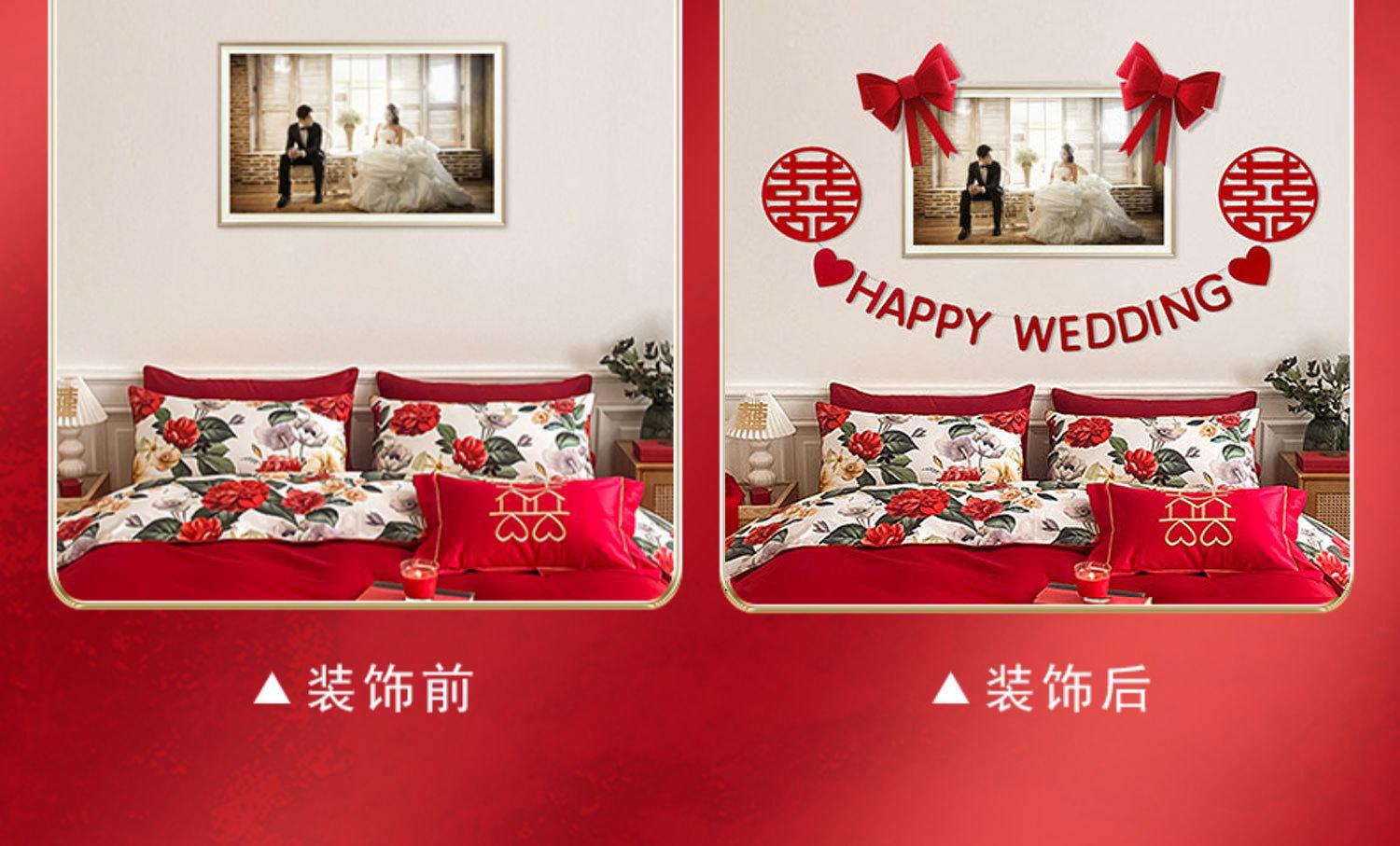 Layout da sala de casamento Especial de casamento Internet Celebridade Nova Casa Sala de estar Fundo Parede Foto de casamento Xi Personagem Flor Decoração Conjunto de suprimentos