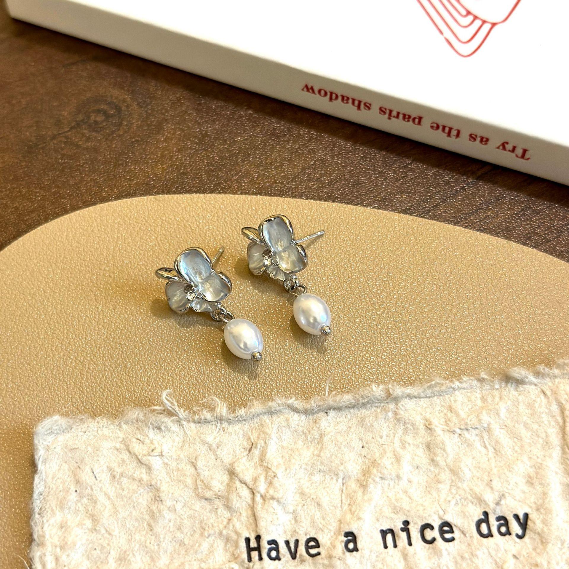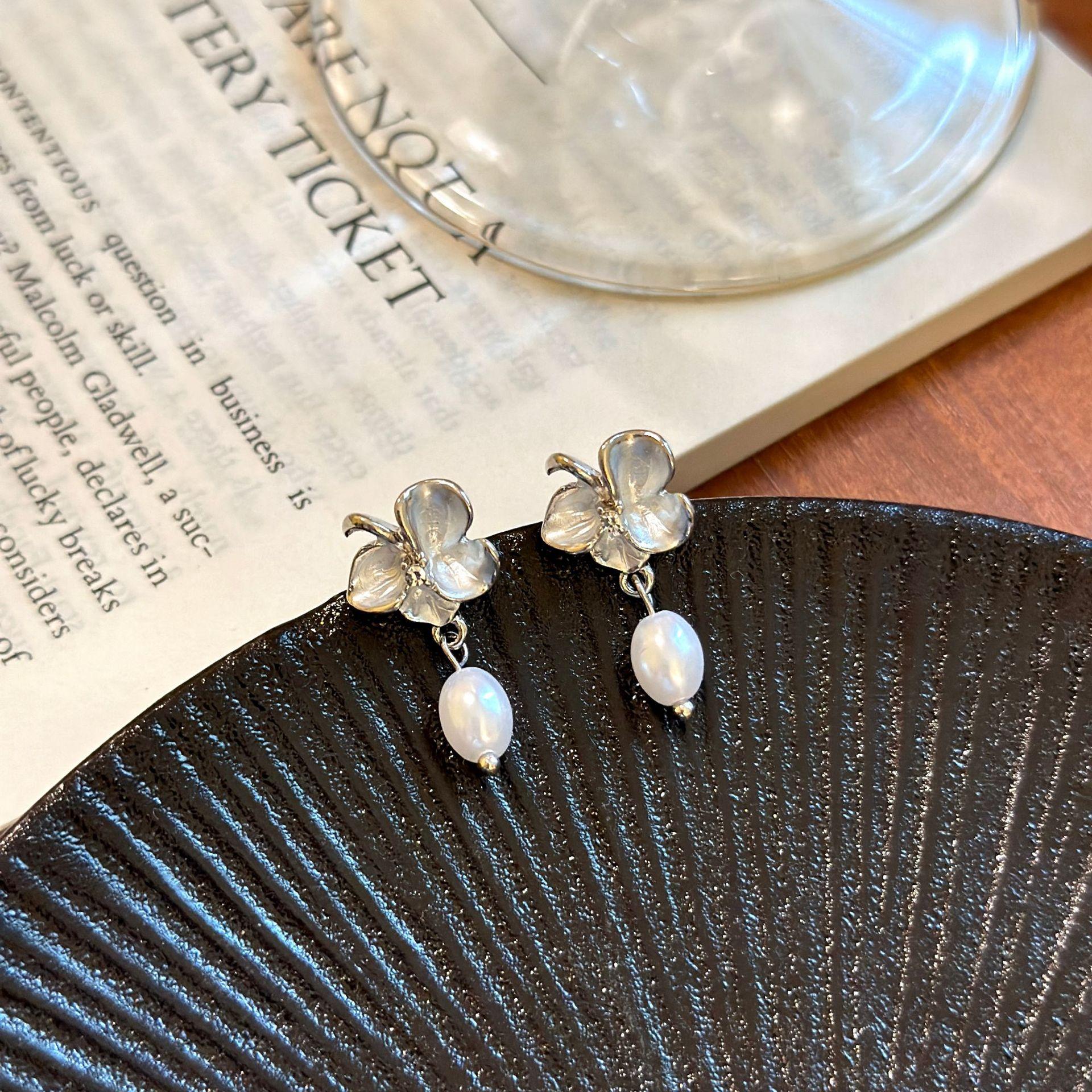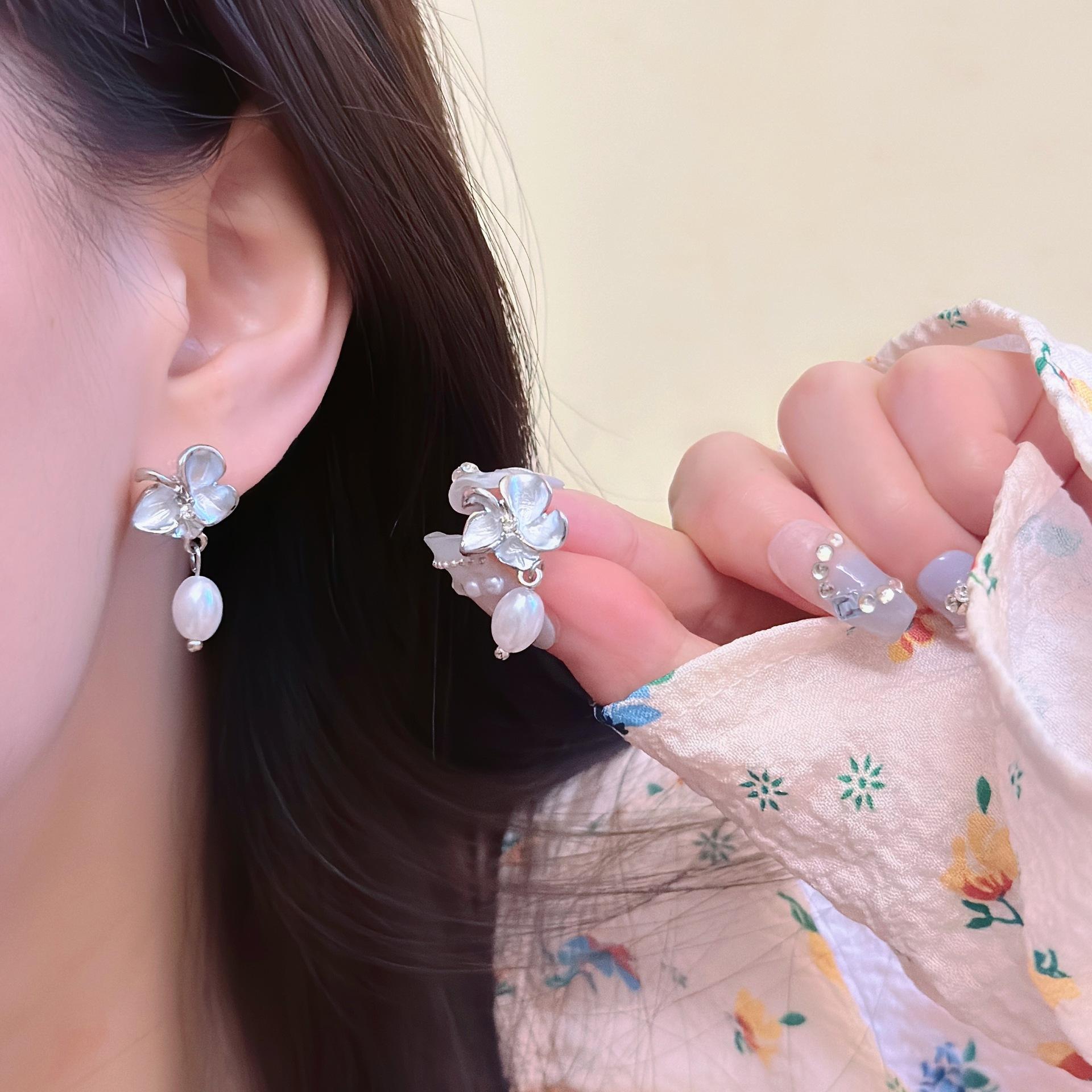 Brincos de imitação de pérolas de fada de flores, brincos femininos novos de primavera e verão, brincos de floresta, design de nicho de luxo leve, brincos avançados, clipe de orelha