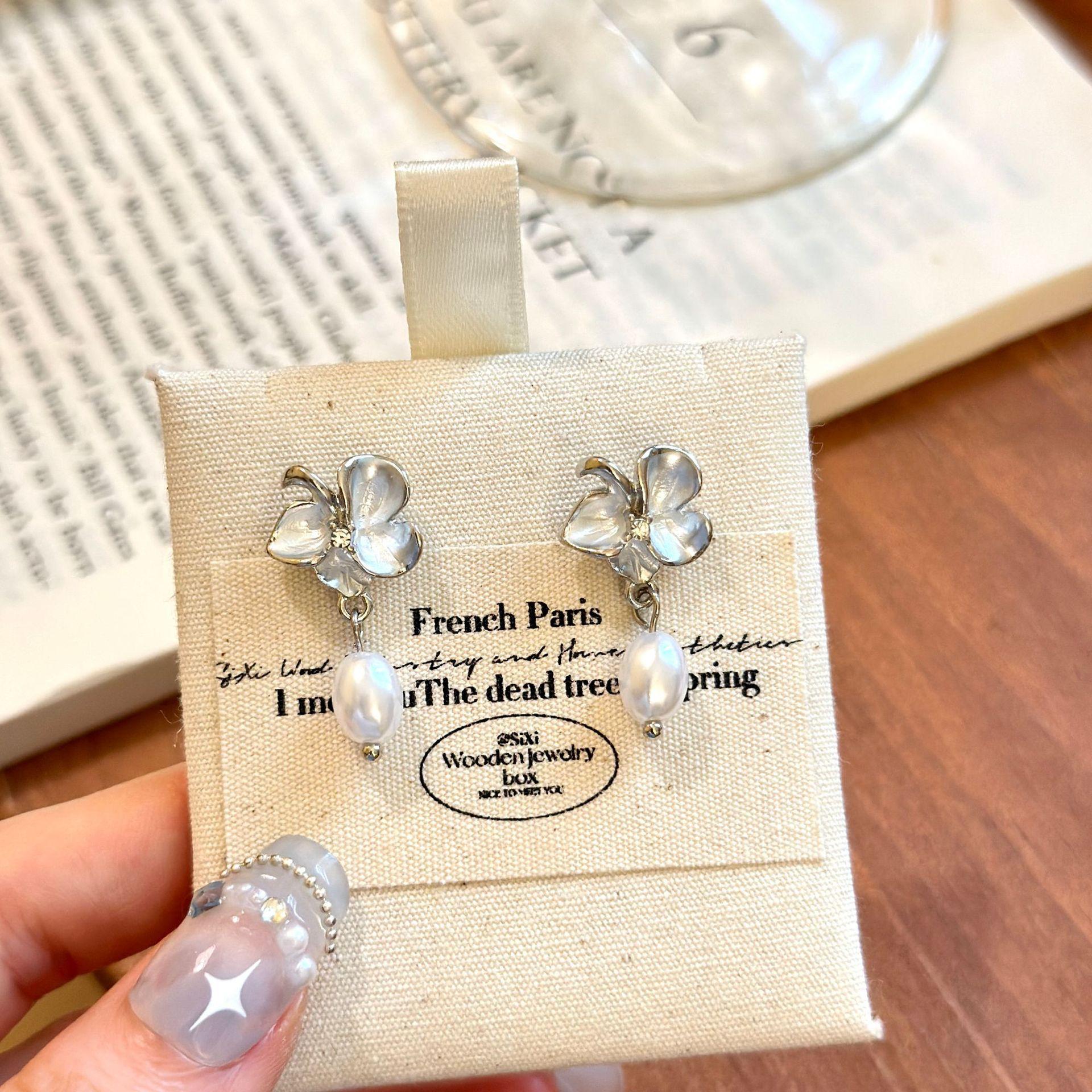 Compre Brincos de imitação de pérolas de fada de flores, brincos femininos novos de primavera e verão, brincos de floresta, design de nicho de luxo leve, brincos avançados, clipe de orelha no atacado no Joom.pro