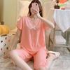 Pijama de algodão e seda para primavera e outono, cardigan feminino de verão, sete mangas, roupas de casa de algodão e seda, roupas de ar condicionado, terno feminino de algodão artificial