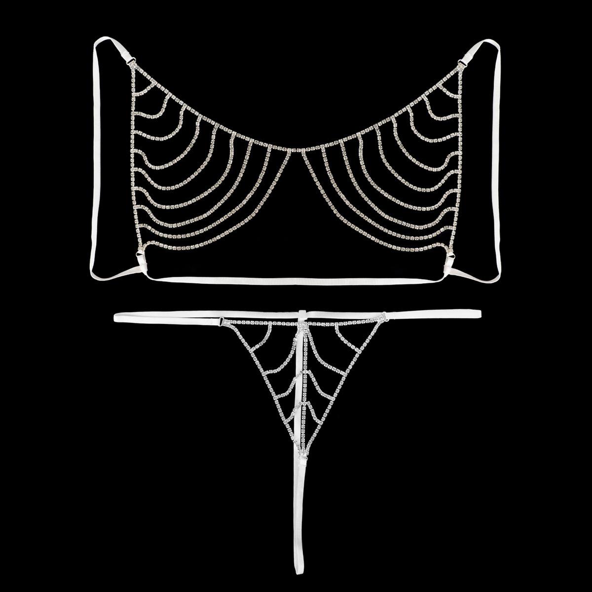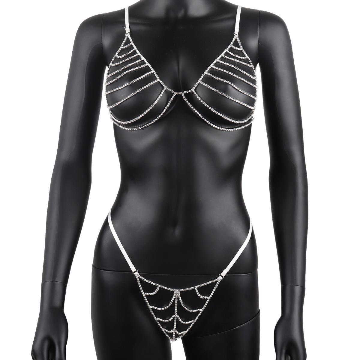 Europeu e Americano cross-border venda quente acessórios boate sexy corda elástica diamante sutiã tanga strass sutiã cadeia do corpo