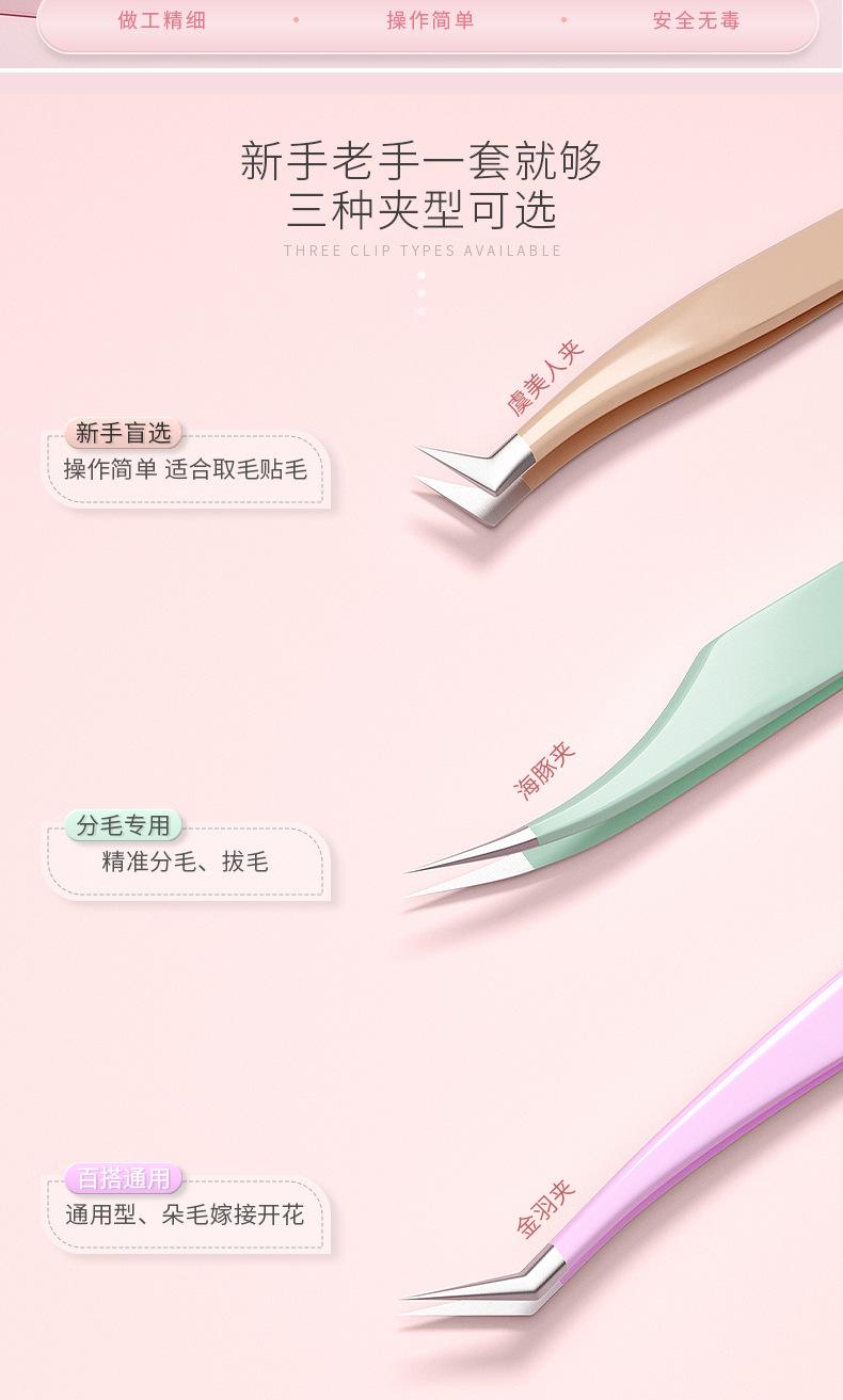 Nova pinça de cílios Clipe de enxerto de modelador de cílios Clipe de penas douradas de sete caracteres Precision Blossom Clipe de ferramenta de beleza de cílios postiços