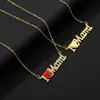 Presente de Dia das Mães Europa e América Multicamadas Banhado a Cobre Ouro Verdadeiro 18K Letra MaMa Micro Cravejado Pingente Gota de Óleo Corrente Clavicular Atacado
