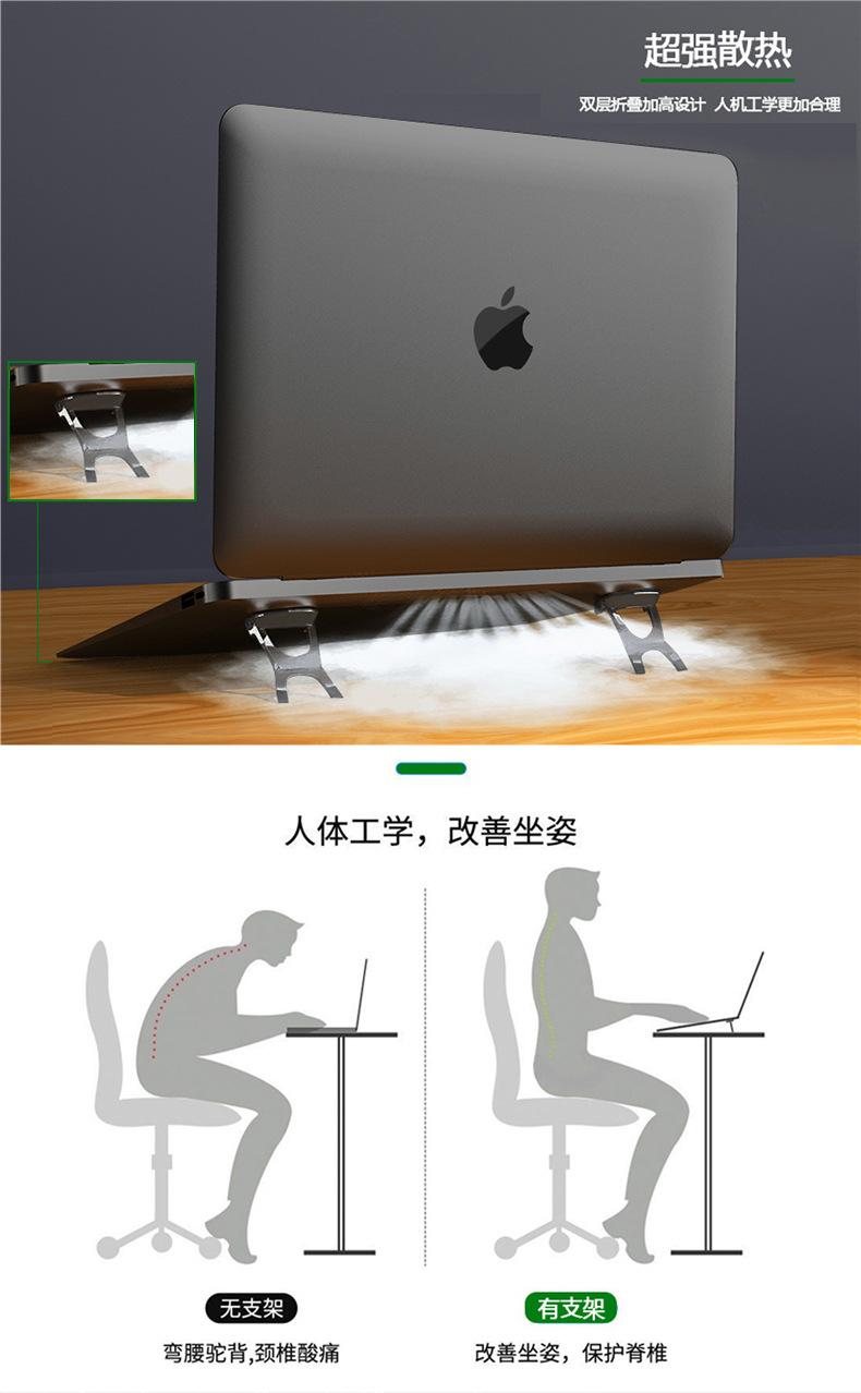 Mini suporte para notebook de liga de zinco invisível de elevação de metal dobrável para dissipação de calor suporte portátil para tablet