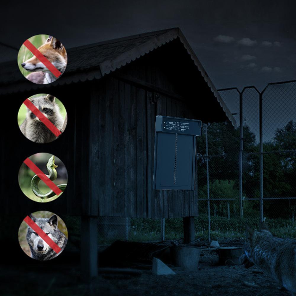 2. Forte e durável: A porta automática do galinheiro é feita de liga de alumínio de alta qualidade com pintura profissional. A porta do galinheiro para uso a longo prazo é forte e durável. Ela pode efetivamente prevenir a invasão de inimigos naturais, como propriedade, coiotes e raposas, e proteger suas galinhas de inimigos naturais.