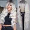 Capa de cabeça de fibra química de moda feminina europeia e americana transfronteiriça com franja cabelo longo encaracolado com ondas grandes gradiente branco