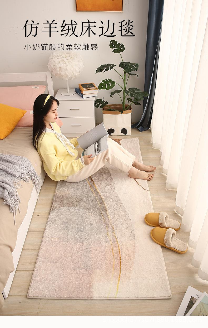 Tapete de cabeceira Quarto Simples Ins Estilo Completo Loja Quarto Tapete de cabeceira Engrossado Quarto de menina Tapete debaixo da cama