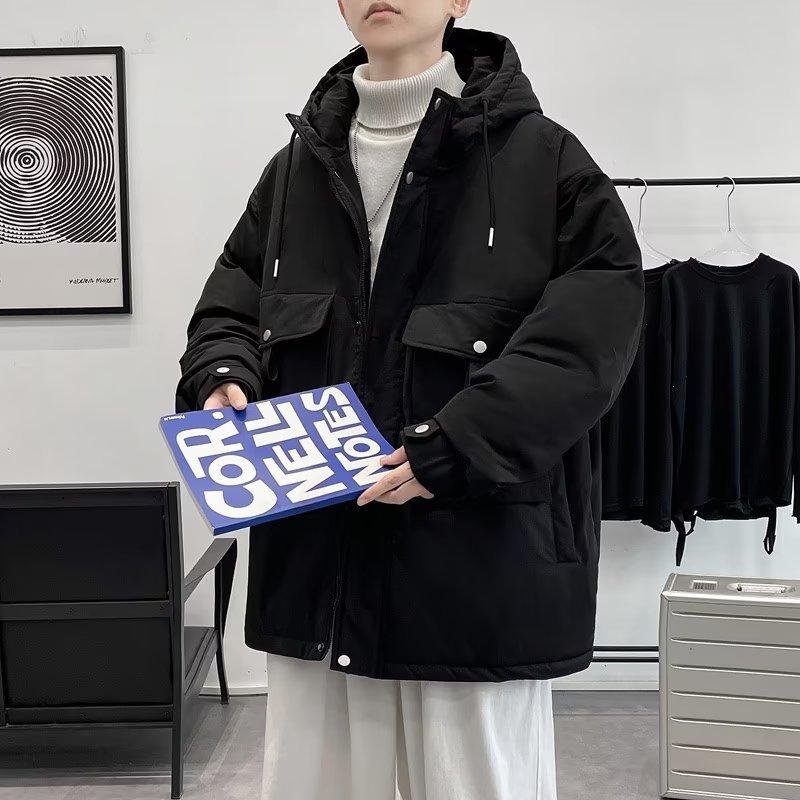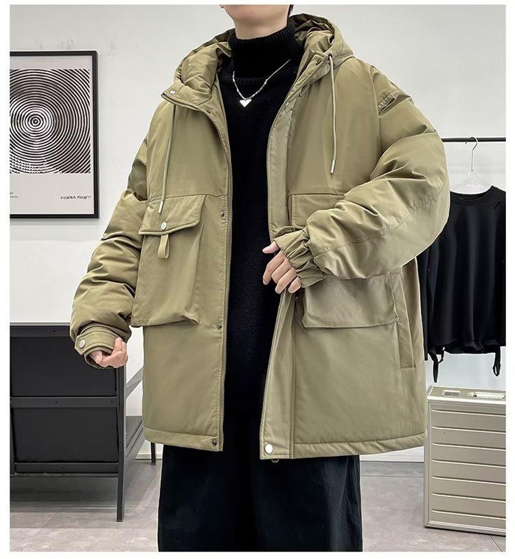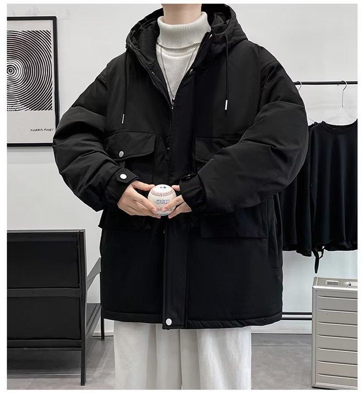 Jaqueta masculina com capuz casaco acolchoado de algodão inverno engrossado casal casaco acolchoado de algodão novo casaco guaxinim de alta qualidade workwear