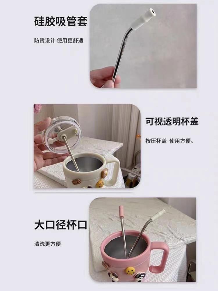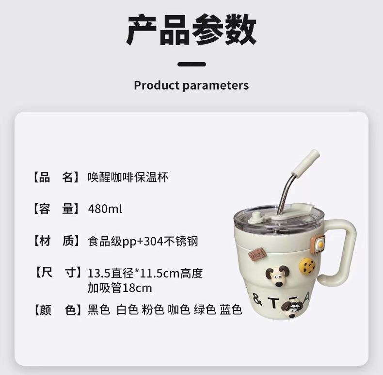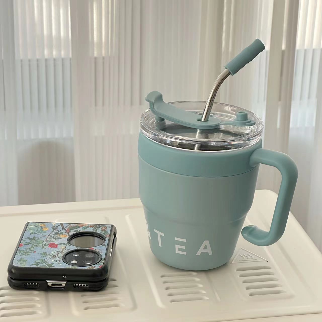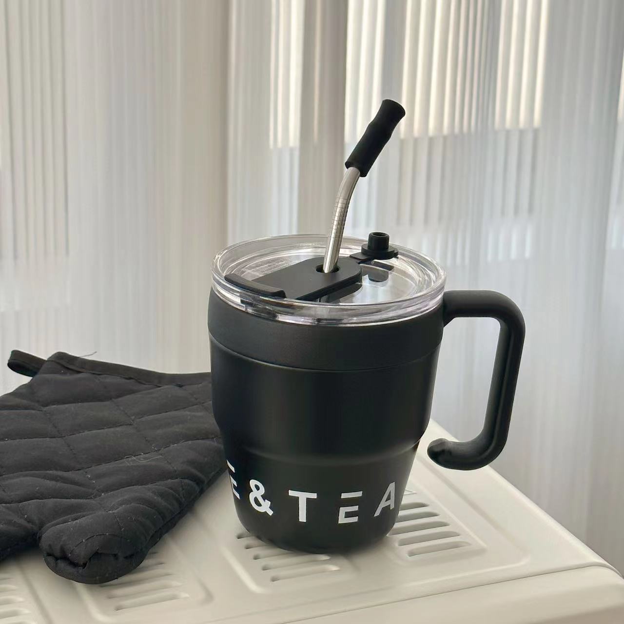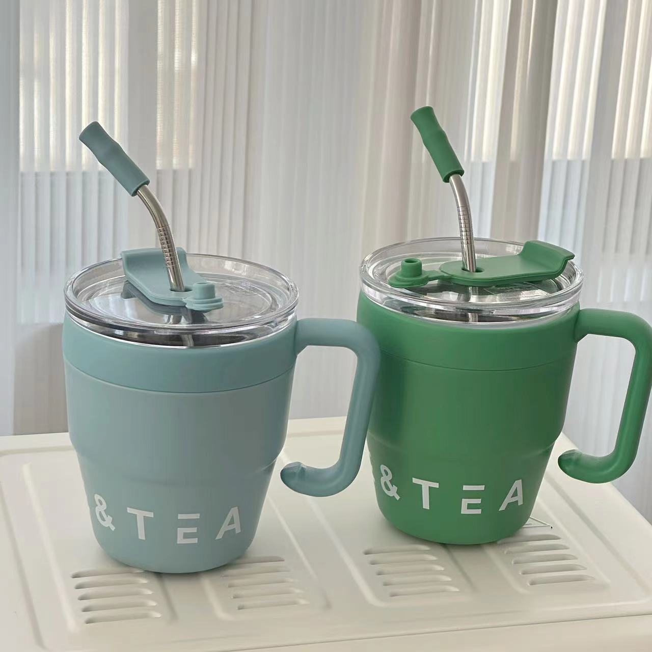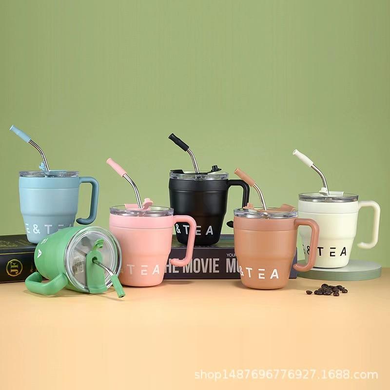 Xícara de Café para Acordar, Copo Térmico de Alta Qualidade, Copo de Gelo de Verão, Copo de Água Fria, Copo com Alça, Copo com Canudo Isolado