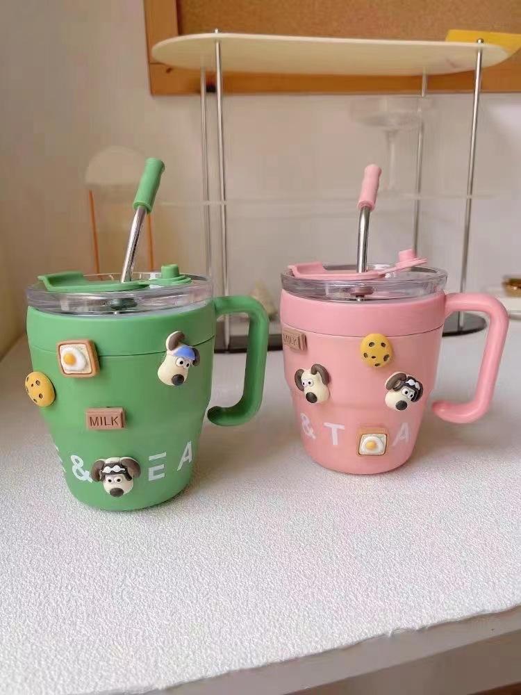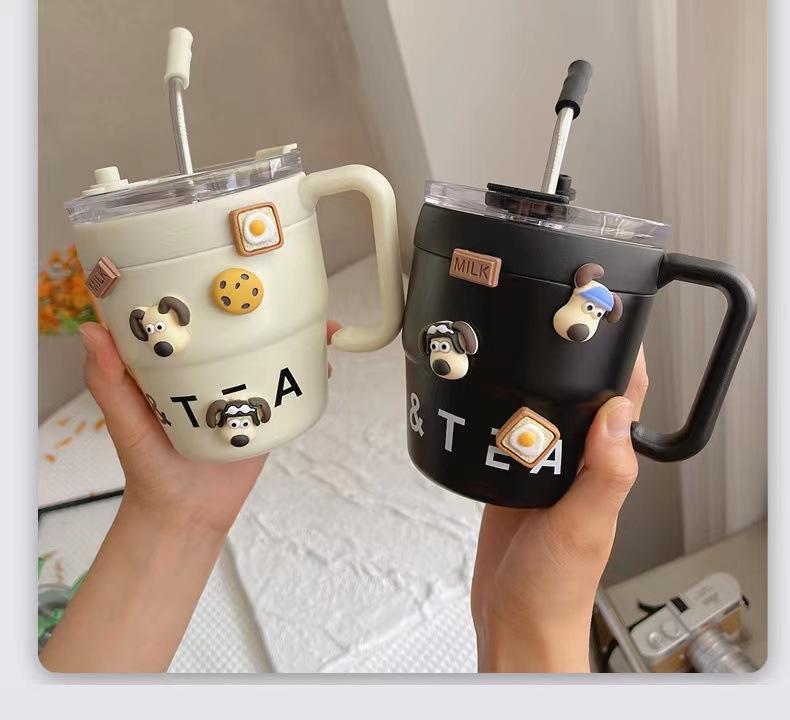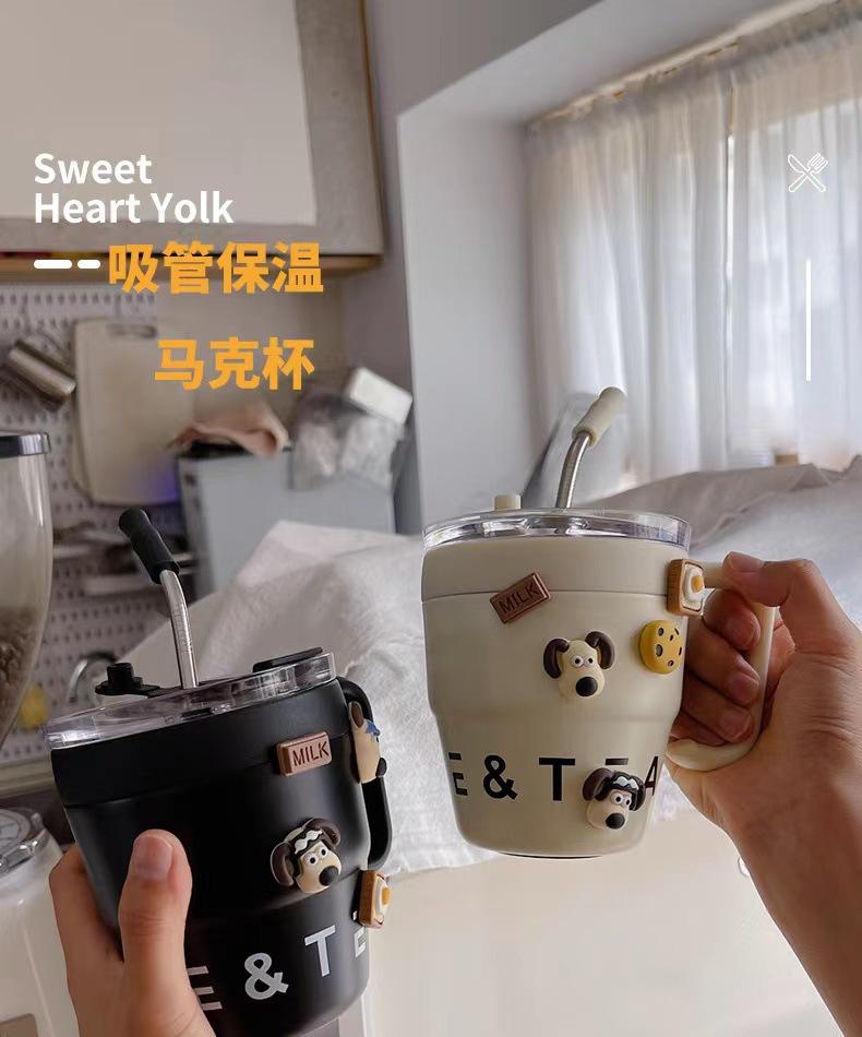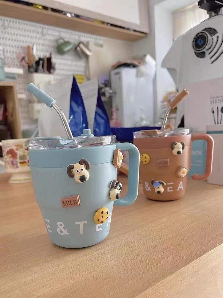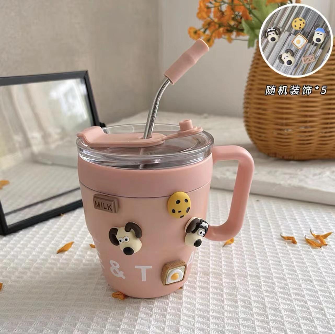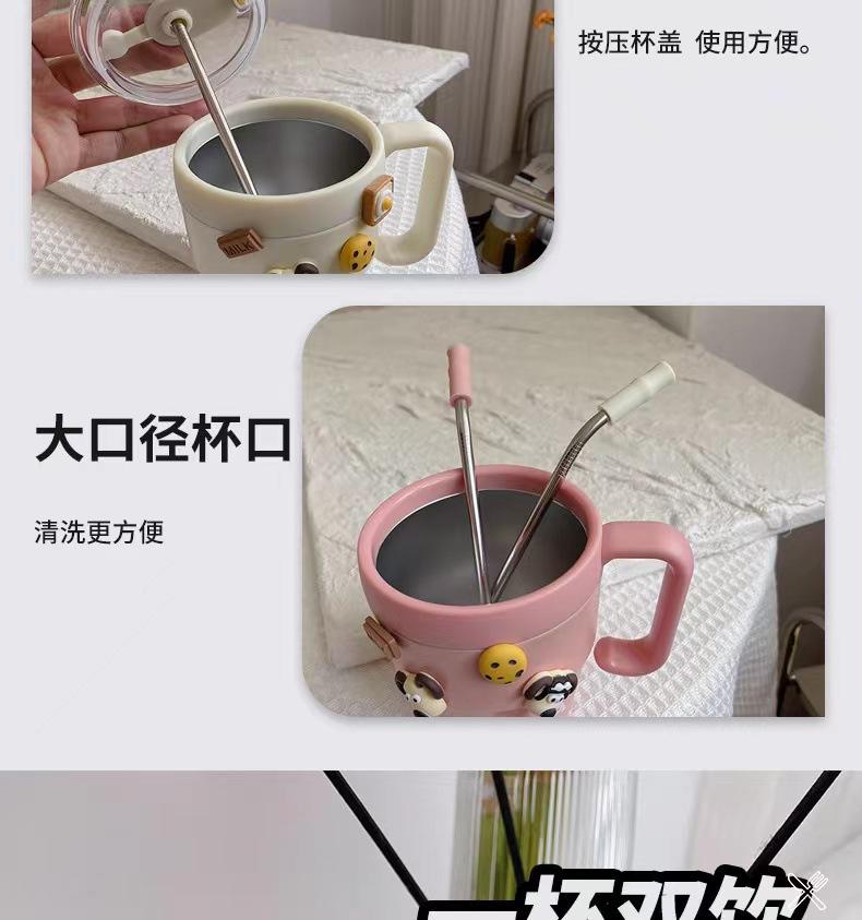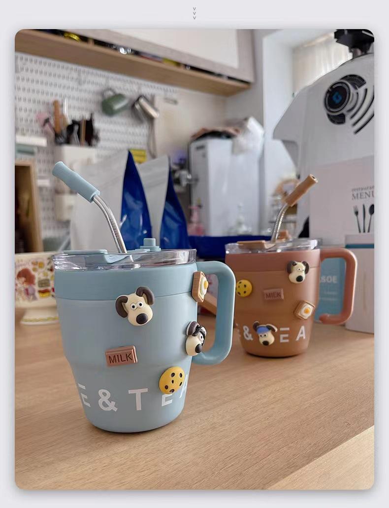 Xícara de Café para Acordar, Copo Térmico de Alta Qualidade, Copo de Gelo de Verão, Copo de Água Fria, Copo com Alça, Copo com Canudo Isolado