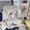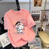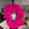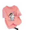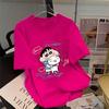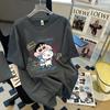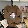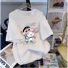 Camiseta feminina de manga curta estilo Hong Kong, algodão puro, estampa de desenho animado, verão, solta, moderna, para casal