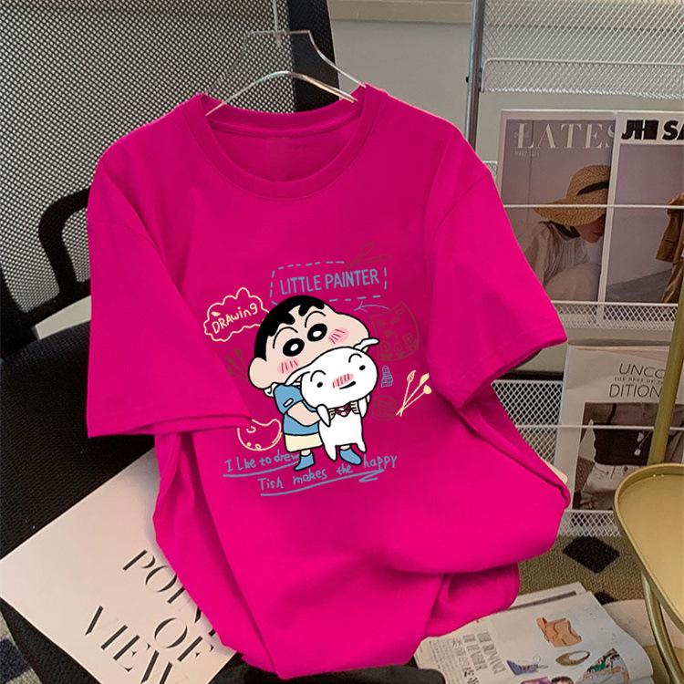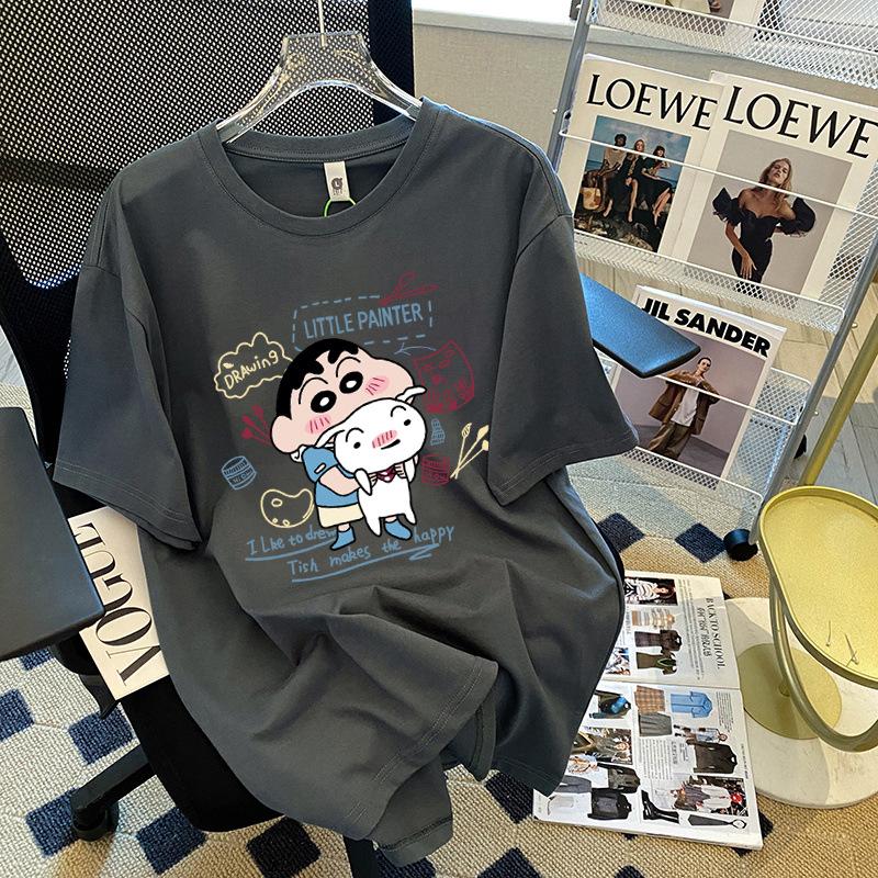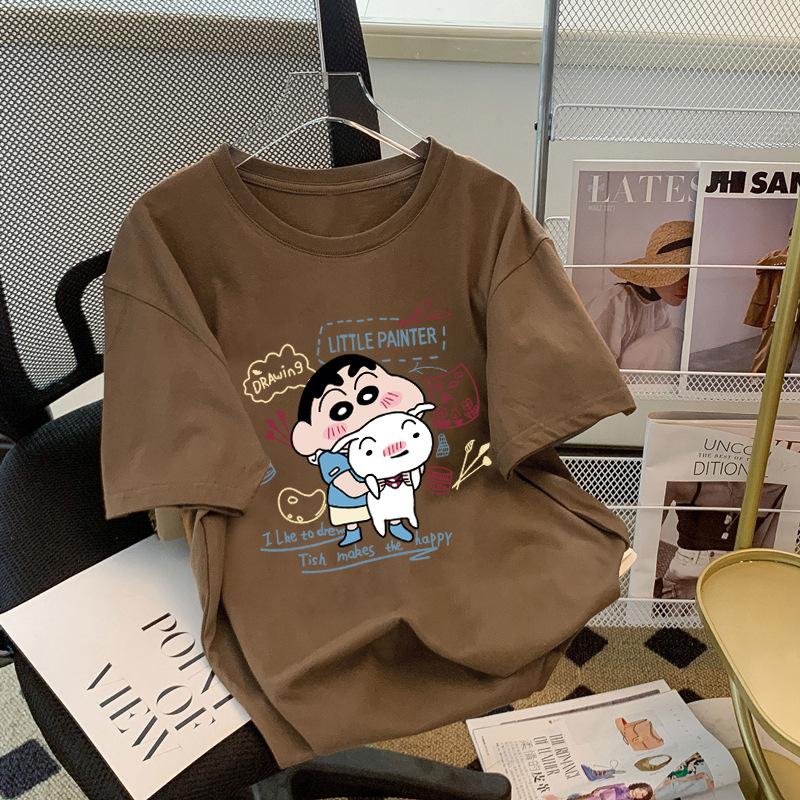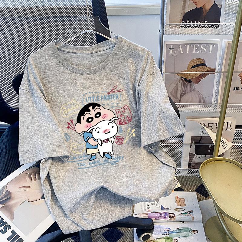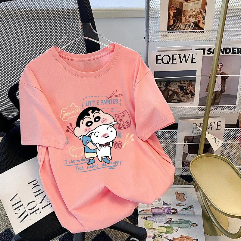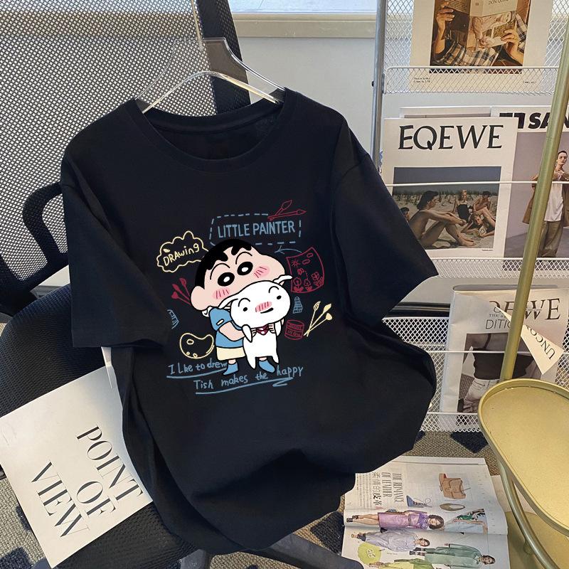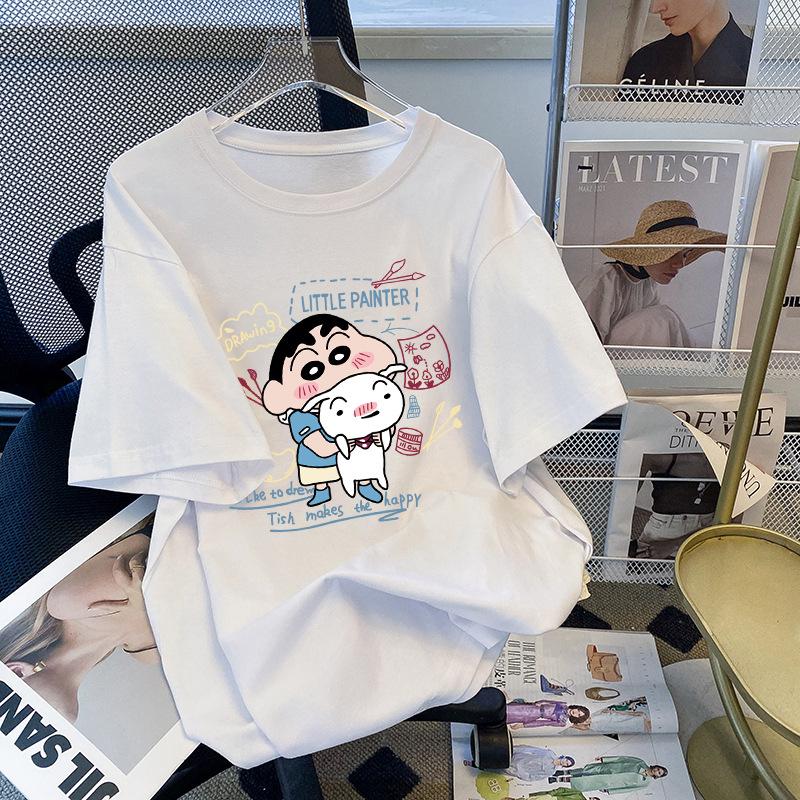 Compre Camiseta feminina de manga curta estilo Hong Kong, algodão puro, estampa de desenho animado, verão, solta, moderna, para casal no atacado no Joom.pro