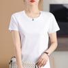 Alta qualidade 160 dupla face de algodão mercerizado de manga curta T-shirt senhoras de seda de gelo puro algodão meia-manga inferior camisa de cor sólida em torno do pescoço top