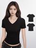 Camiseta curta estampada com cordão, manga curta feminina, verão 2024, nova chegada, design, cintura alta, ombros de fora, decote em V, top moderno