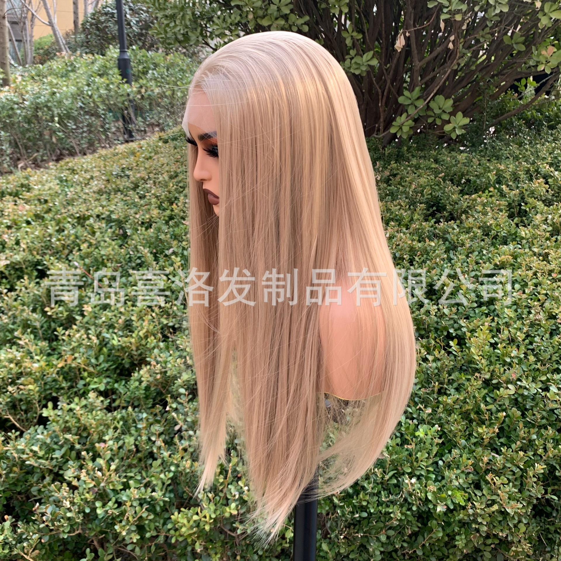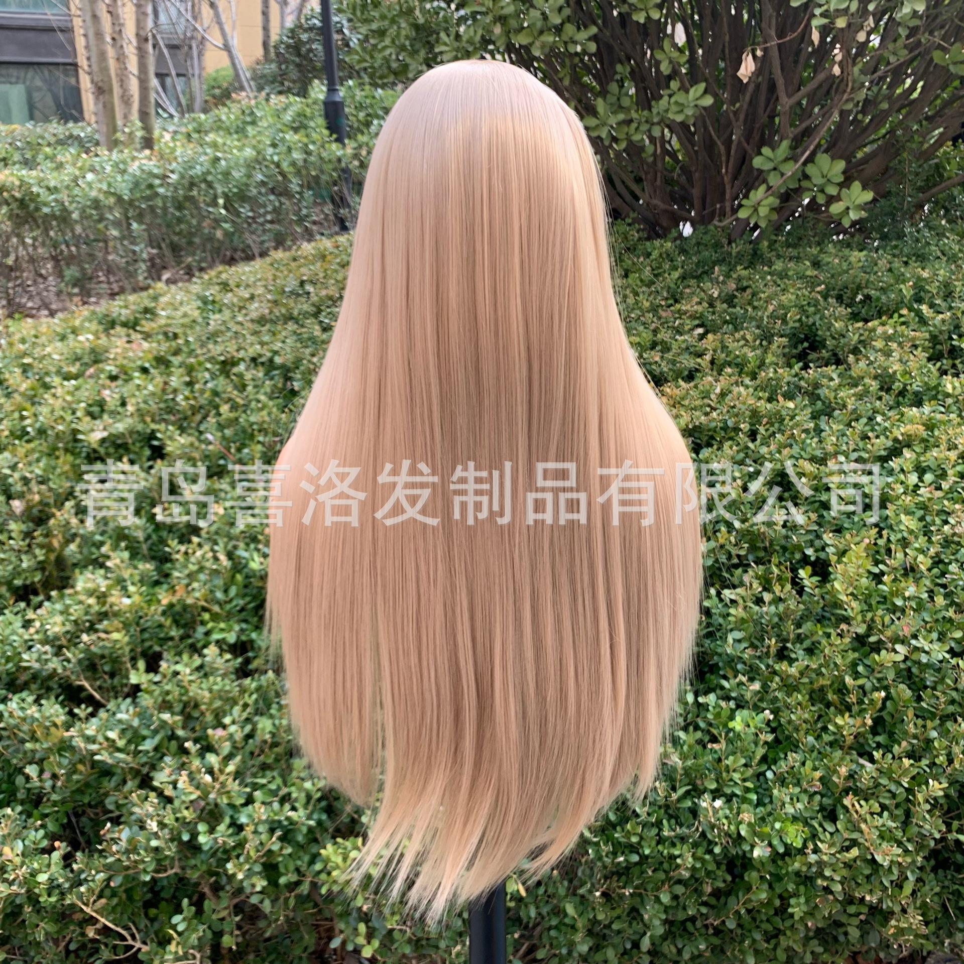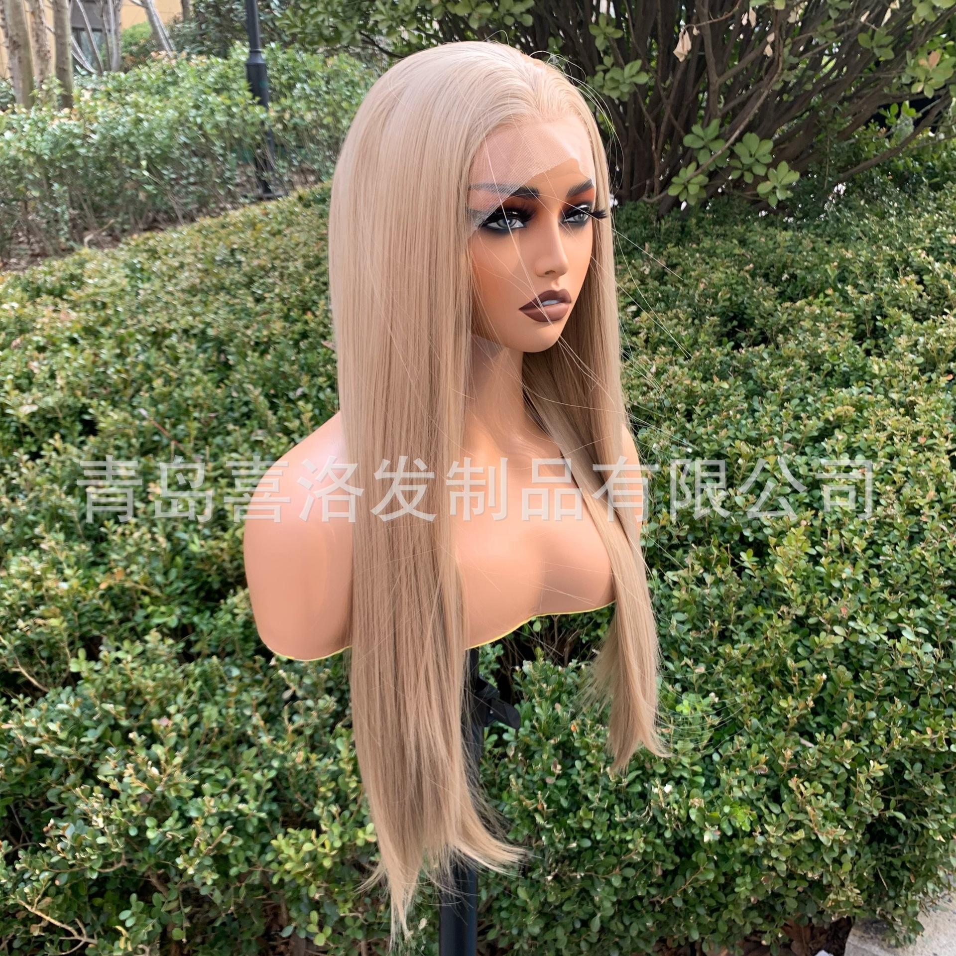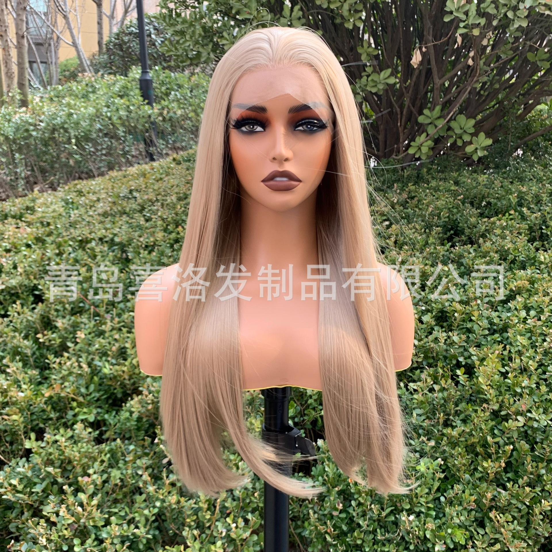 Peruca Estilo Europeu e Americano 13X4 Lace Front, Cor Chá com Leite, Cabelo Longo Liso, Repartição Livre, Linha Capilar Natural, Peruca de Fibra Sintética de Alta Temperatura
