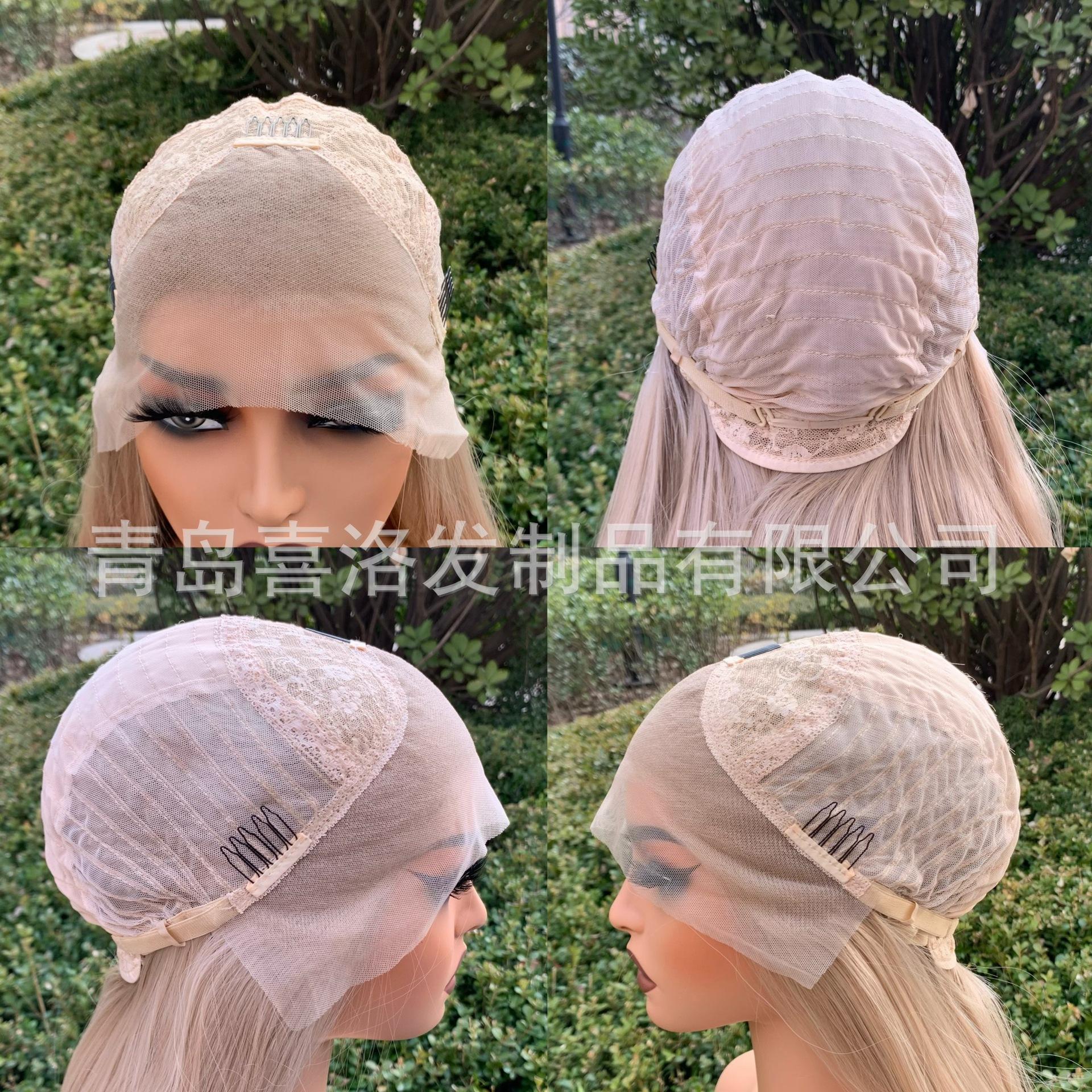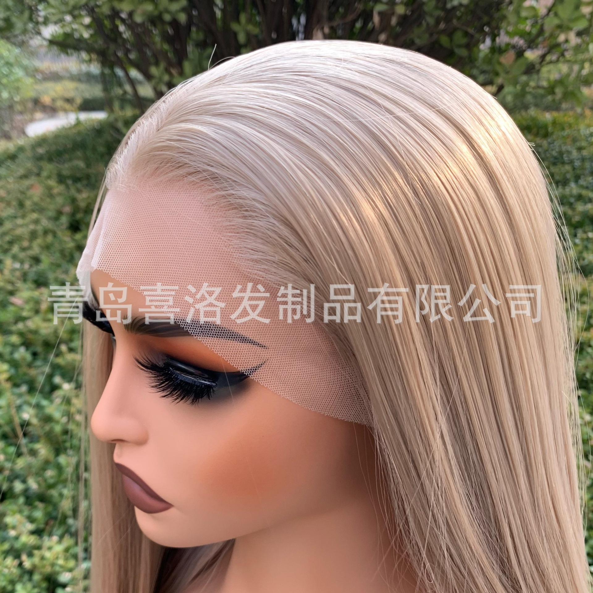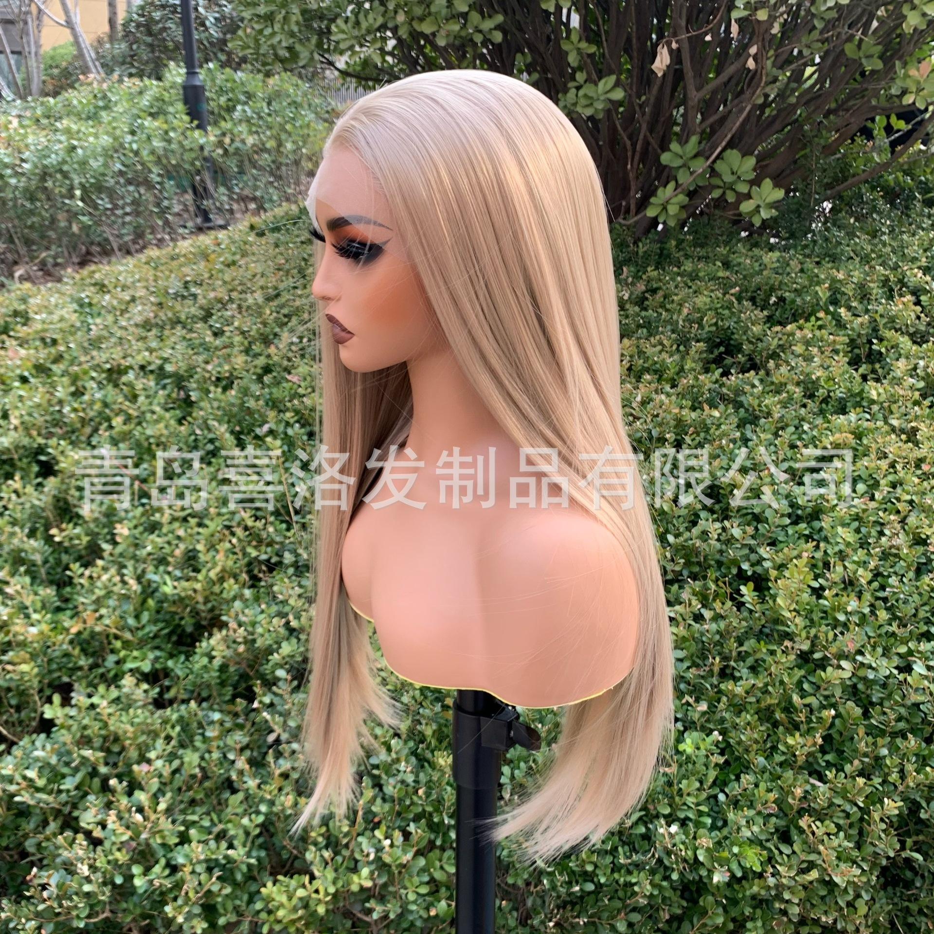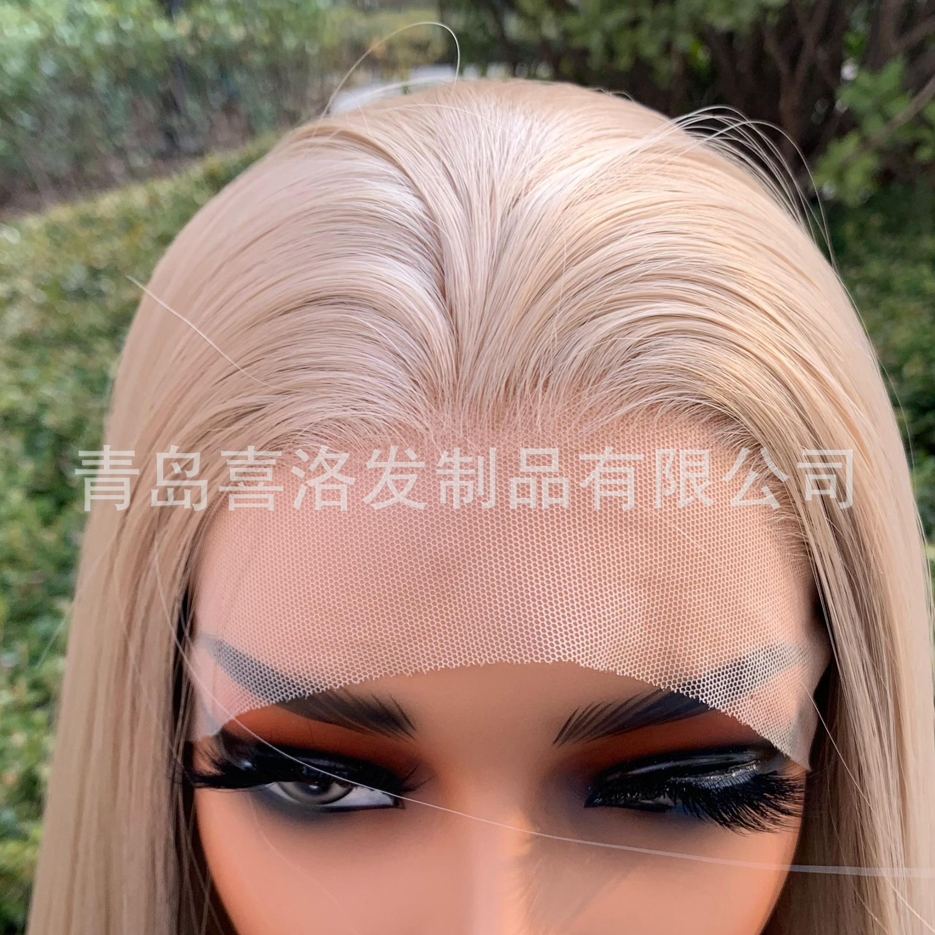 Peruca Estilo Europeu e Americano 13X4 Lace Front, Cor Chá com Leite, Cabelo Longo Liso, Repartição Livre, Linha Capilar Natural, Peruca de Fibra Sintética de Alta Temperatura