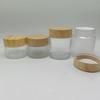 Tampa de grão de madeira por atacado 100g garrafa de creme garrafa de creme garrafa de vidro fosco 200g tampa de grão de madeira de transferência de água