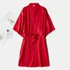 Camisola de seda de meia manga feminina Vestido de maquiagem de casamento Vestido de cardigã fino Vestido de manhã nupcial Vestido de namorada Cor sólida Sem palavras